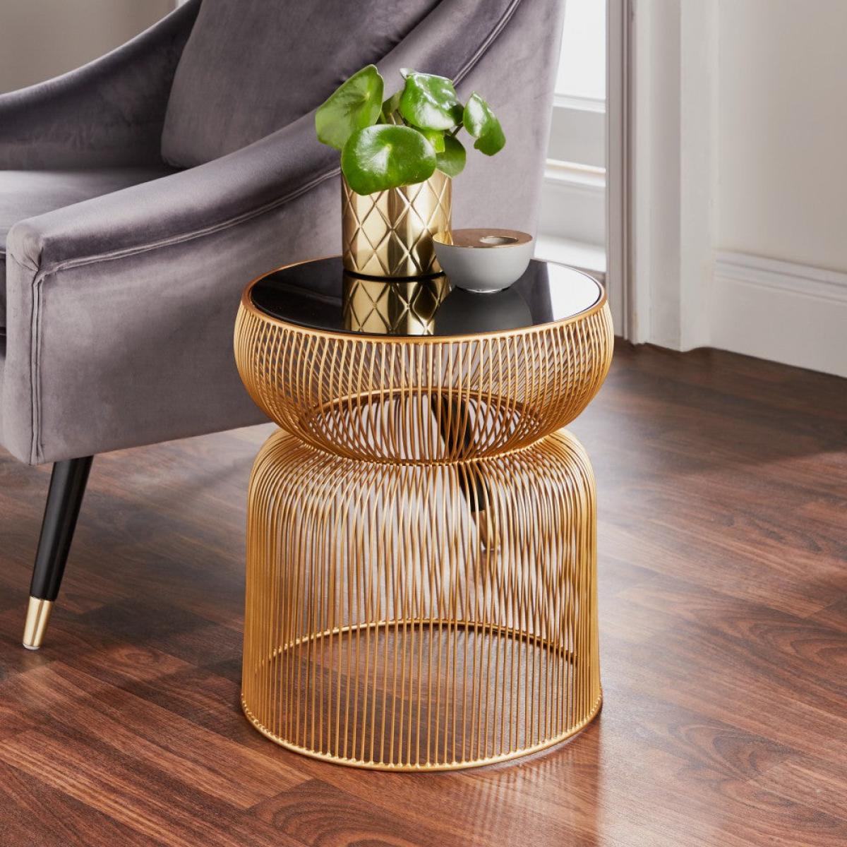 This Curve side table will create a luxe feel with its metal wire base ensures a bang on-trend look along with its sleek black tinted glass. It will make an excellent addition to any lounge space and will become the home to all your aperitifs with family and friends!. *Moot Trading Ltd is not a lender and acts only as an introducer. The credit product is provided by Klarna Bank AB (publ). Credit is only available to permanent UK residents aged 18 and over, subject to status. Terms and conditions apply. Please note that the following products are not regulated by the FCA: Pay in 30 days and Pay in 3 instalments. Read More.
