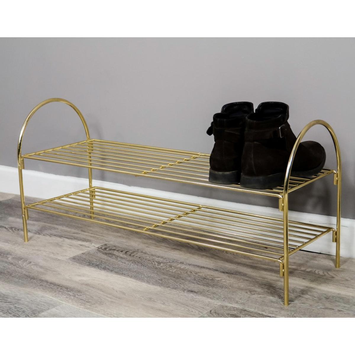 This two tier gold eletcroplated steel show storage rack is a stylish and functional item. This smart storage unit is suitable for a maximum of 12 shoes and can store up to 6 pairs. Perfect for keeping shoes tidy in your hallway, or any other room in your home. *Moot Trading Ltd is not a lender and acts only as an introducer. The credit product is provided by Klarna Bank AB (publ). Credit is only available to permanent UK residents aged 18 and over, subject to status. Terms and conditions apply. Please note that the following products are not regulated by the FCA: Pay in 30 days and Pay in 3 instalments. Read More.