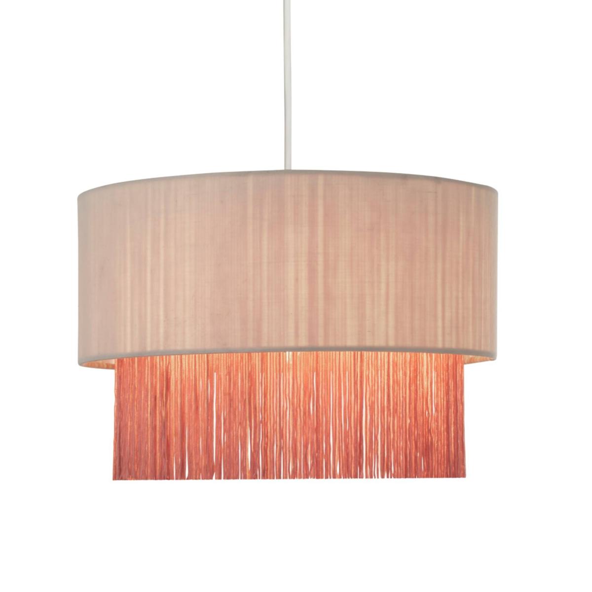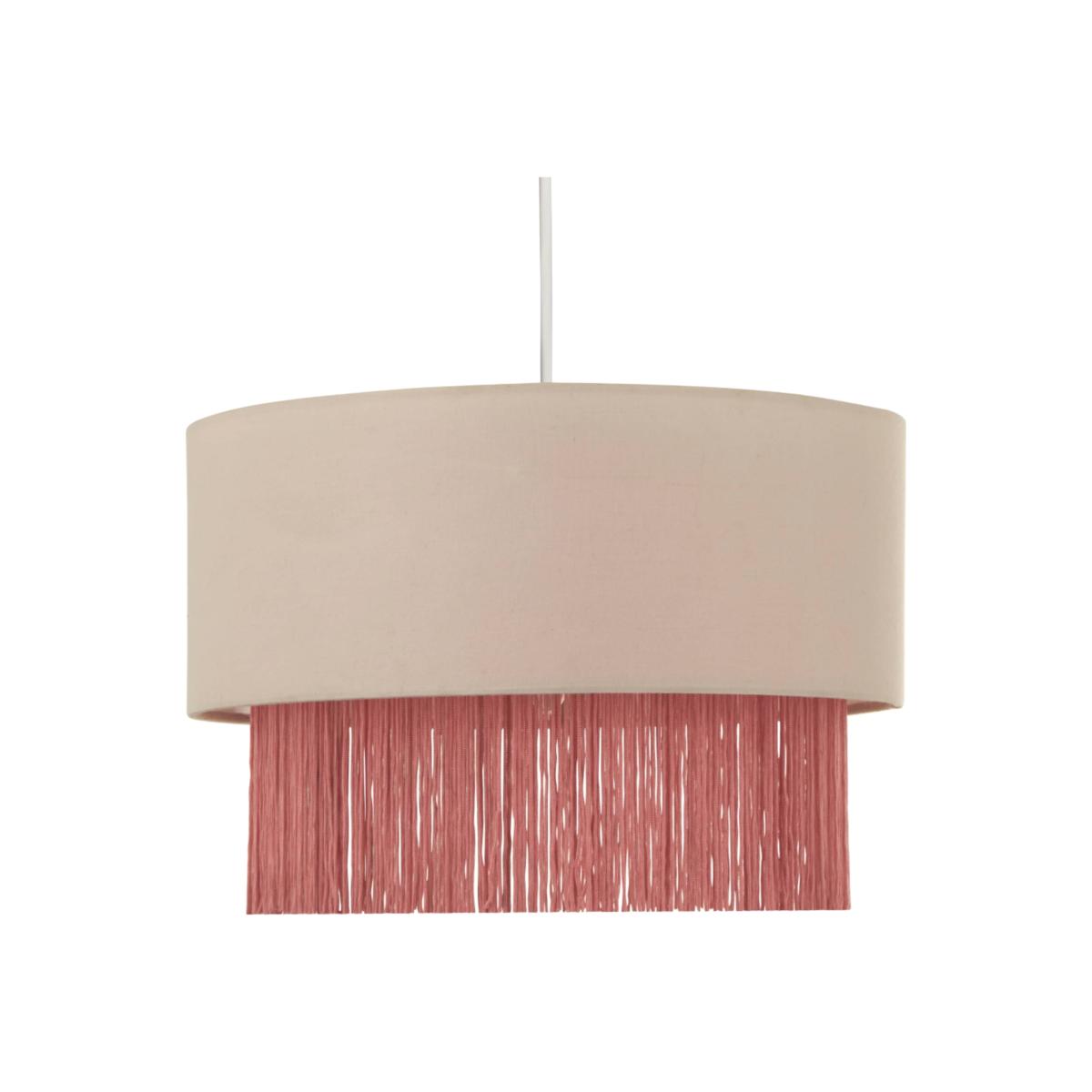 Charming pendant light shade boasting a natural finish with pink fringe detailing. A beautiful and sweet light shade, the Natlia 30cm Pendant Light Shade is a lovely piece from Pagazzi Lighting. Boasting a natural linen finish, this ceiling light shade is complete with pink fringed detailing. It is an 'easy fit' non-electric pendant which can be fitted with ease to an existing bulb holder, perfect for adding a touch of colour into bedrooms and hallways.