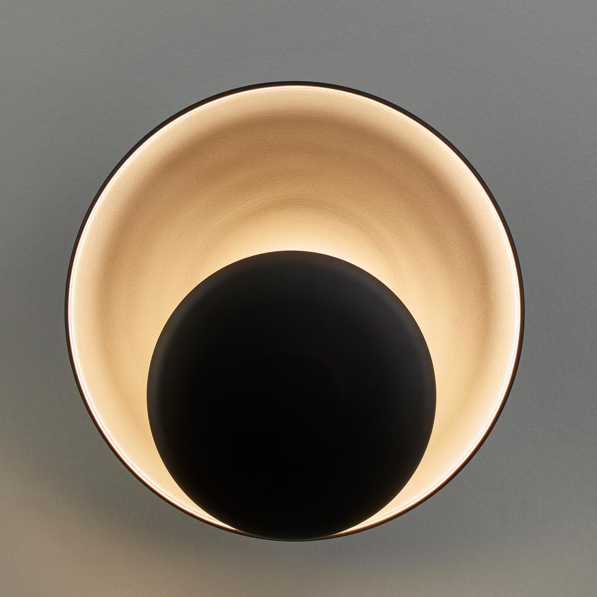 Shining between two reflectors in the form of an eclipse, the light diffused by the Naton wall light creates mood lighting. Finishing detail: Black and mocha metal circles. Product Details. Crafted from black and mocha metal with epoxy finish. E14 socket for compact fluorescent bulb, max. 8W (not included). Black woven power cable Shop the full Naton collection online. Dimensions. Diameter: 27.5 x depth 12cm Dimensions and weight of parcel. 34 x 17 x 35cm. 1kg.