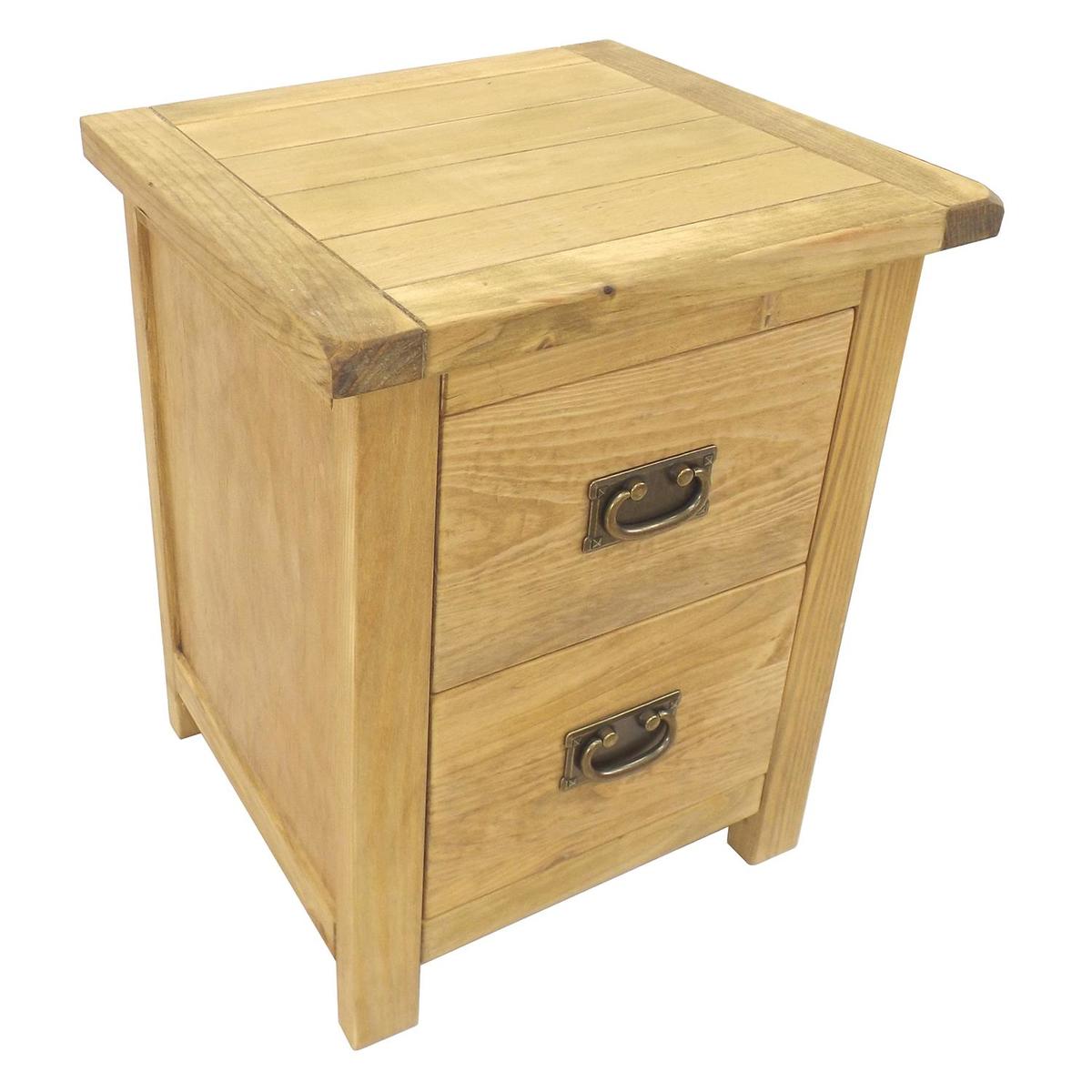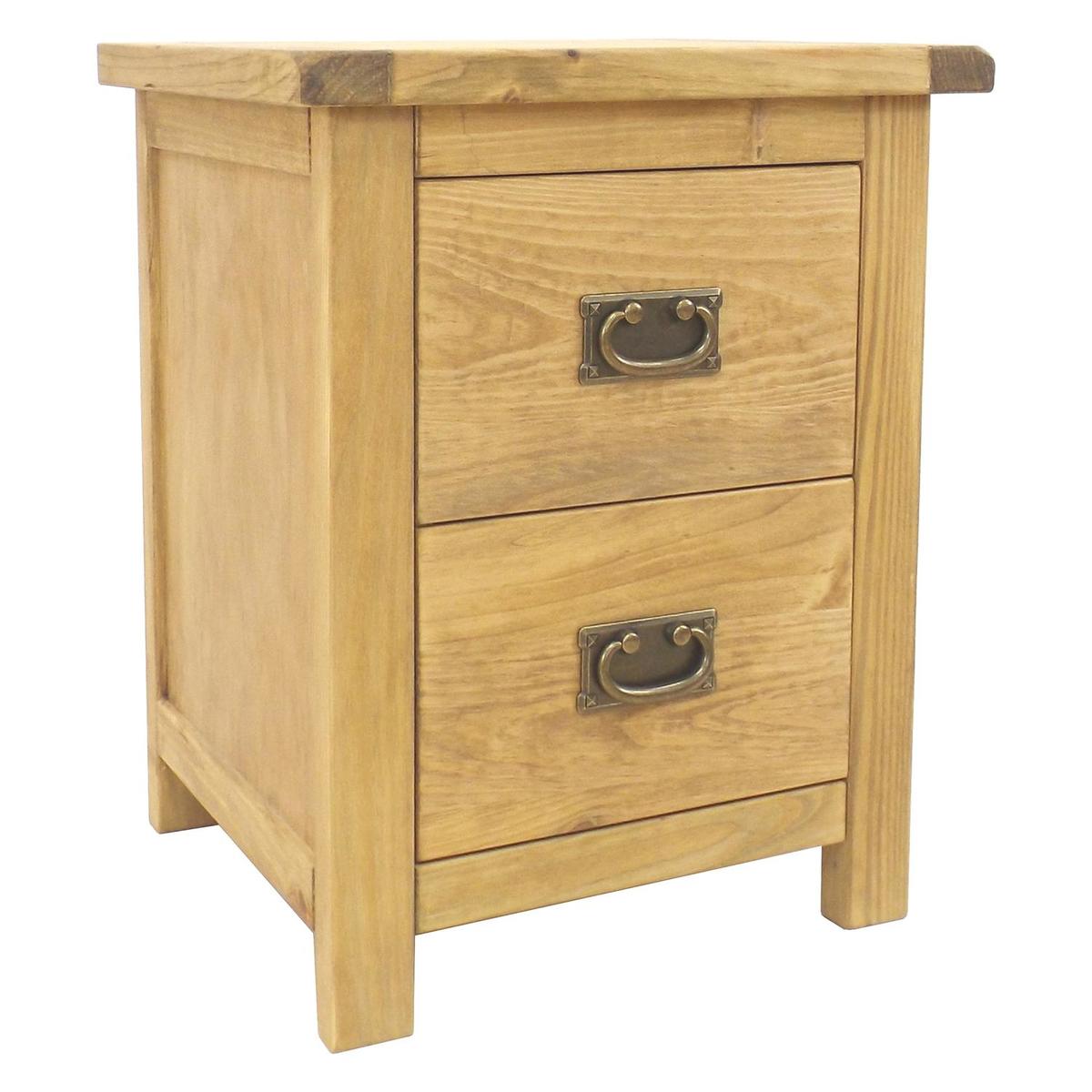 Natural 2 Drawer Pull Handle Bedside Brown