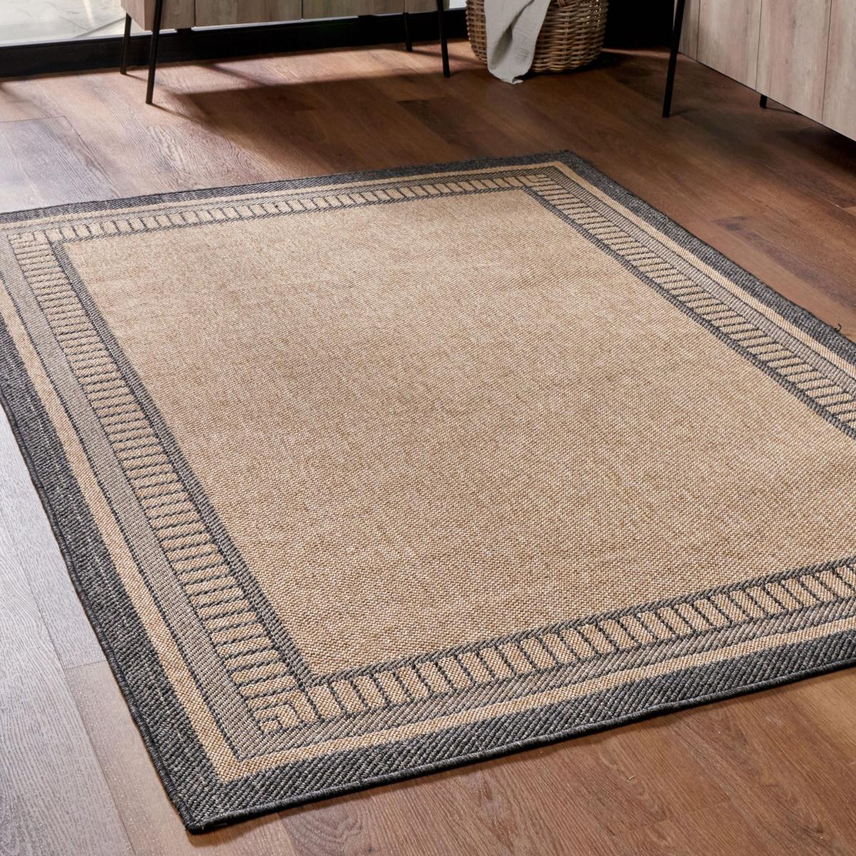 I love how this rug offers a classic yet versatile look that can anchor a variety of interiors. The neutral tones and black border give it a timeless appeal, making it suitable for both traditional and modern spaces. It works particularly well in living rooms or bedrooms with wooden or neutral-coloured flooring, adding warmth and texture without overpowering the decor. For styling tip, consider layering it over a larger, textured textile or pairing it with understated furniture to highlight the border detail. Its durable construction also makes it practical for high-traffic areas, ensuring it stays looking fresh while elevating the overall aesthetic.