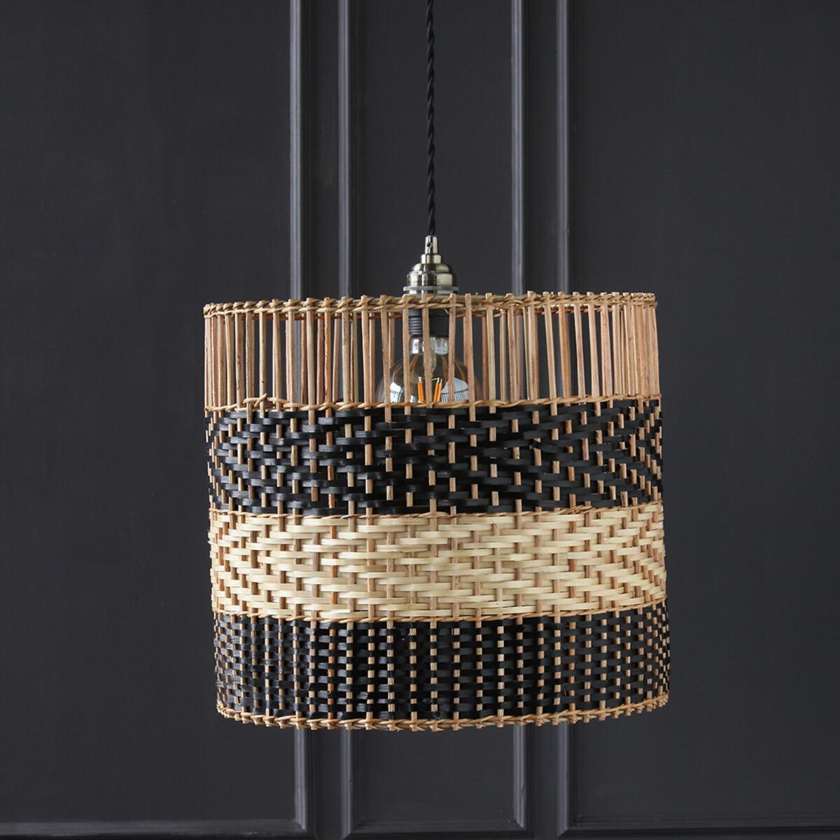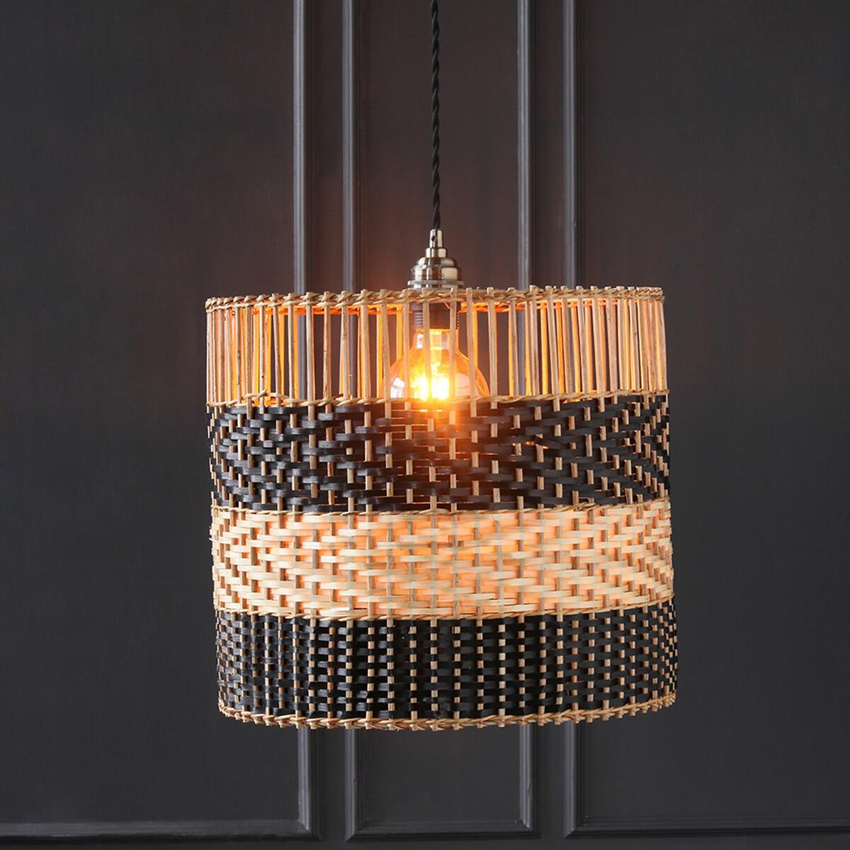 Natural and Black Panel Circular Bamboo/Rattan Pendant Ceiling Shade (H35cm)
