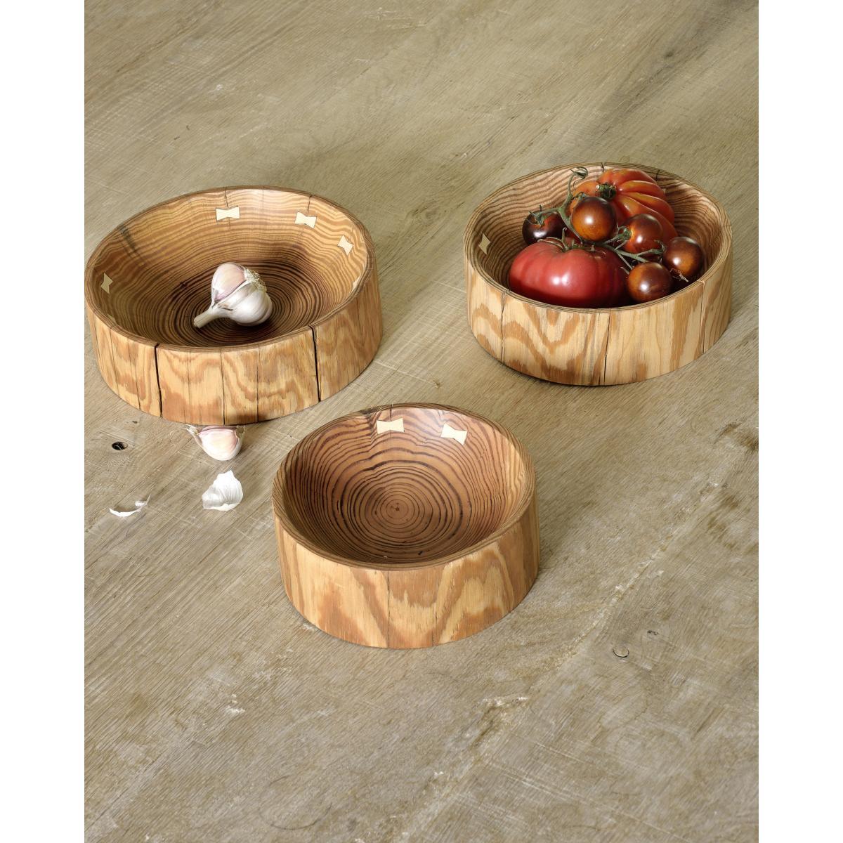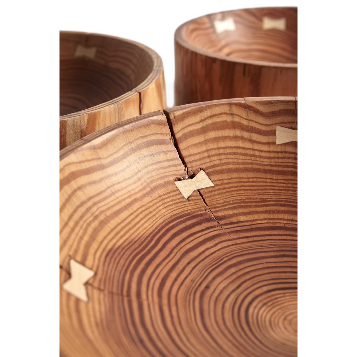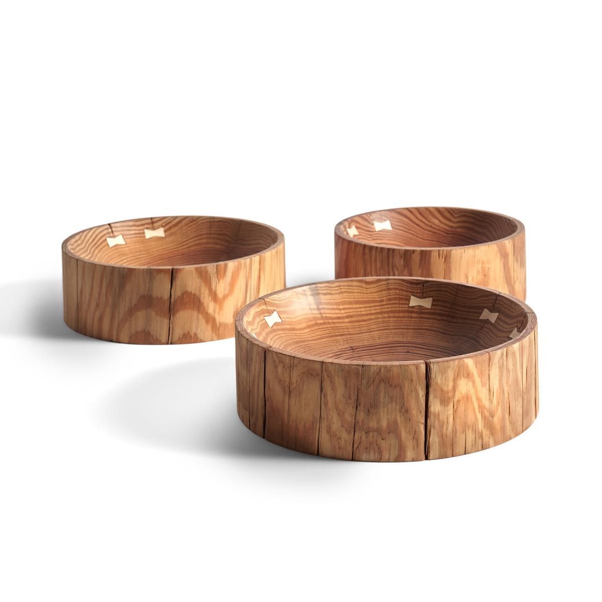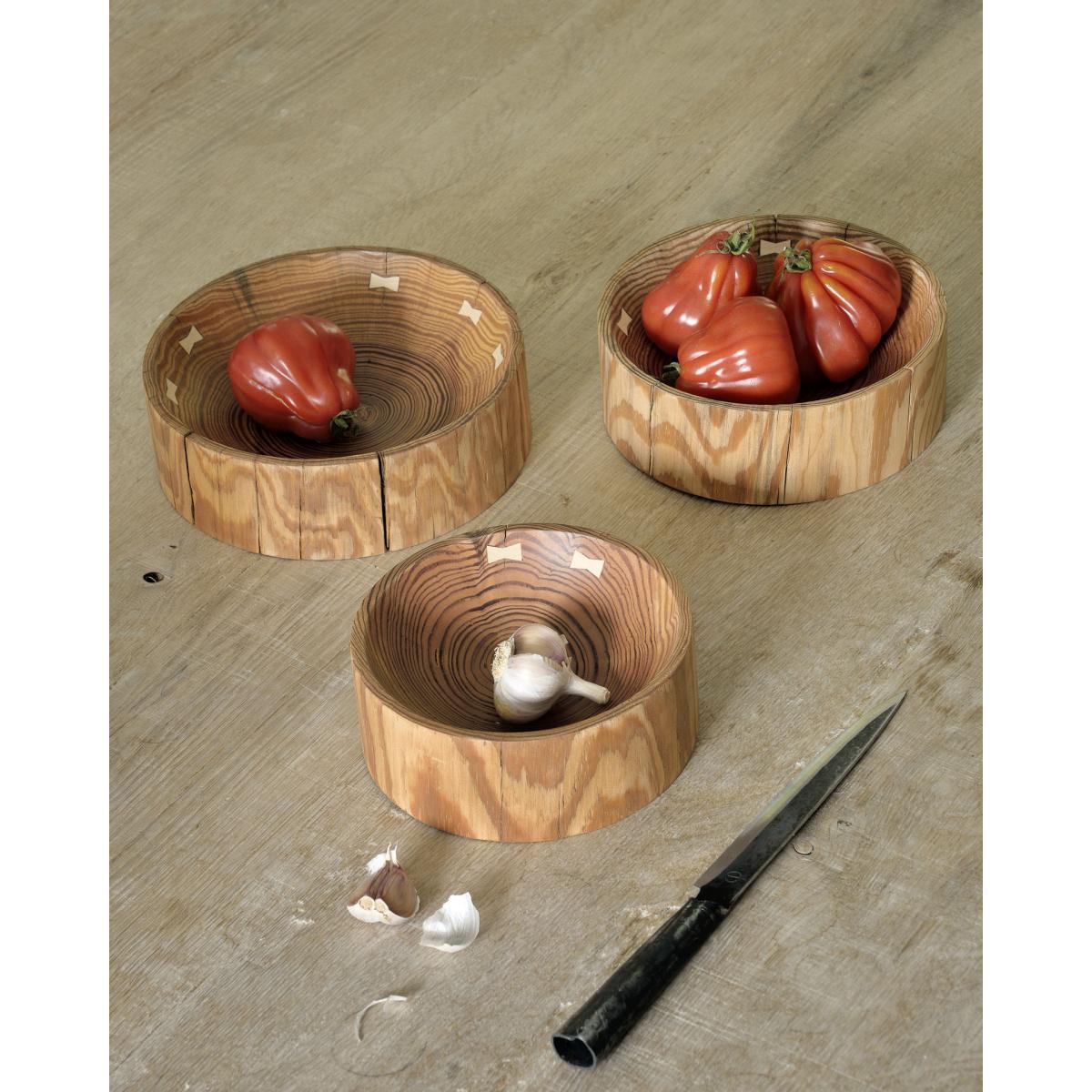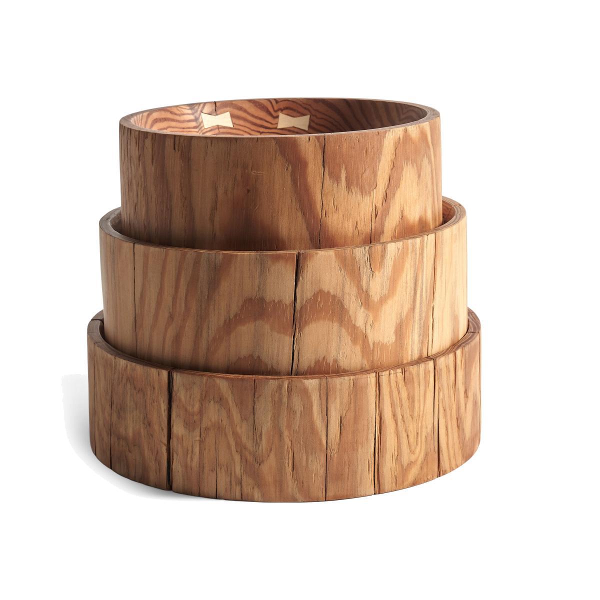 An authentic style for this set of three baskets hand-carved from solid pine. These creations showcase wood in its raw state: the defects which are generally glossed over here are highlighted and shown off. The grain of the wood, its knots, and the slightly irregular contours are the ingredients of a primitive aesthetic which draws a link between past and present. These pieces are made by hand using traditional techniques. This manual production makes each piece different. This is the mark of a unique, quality product.