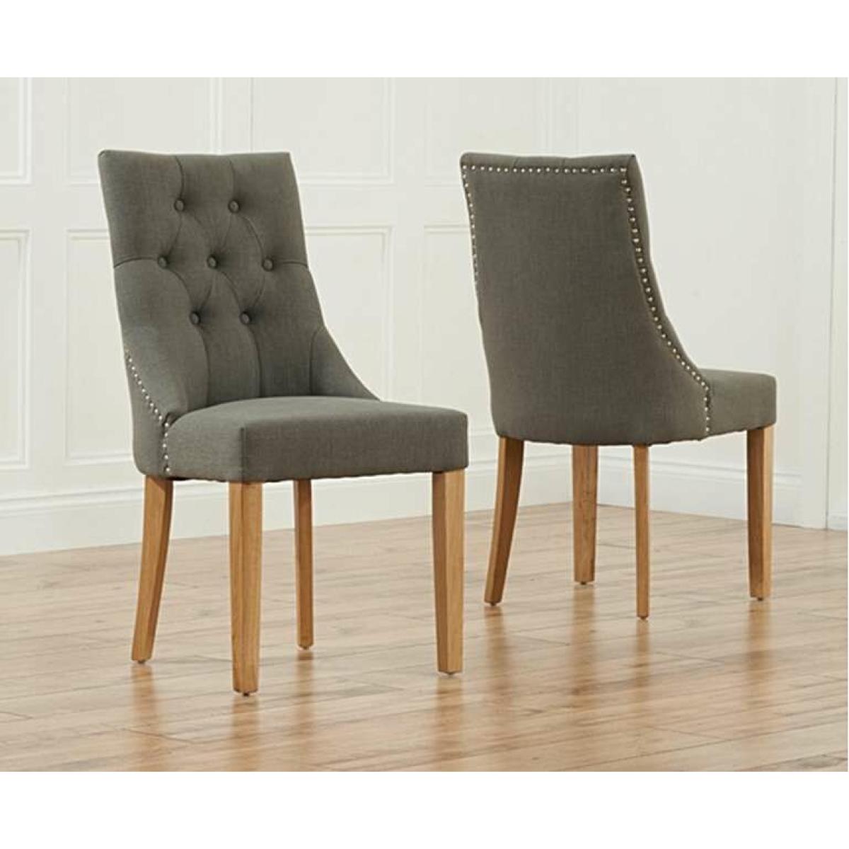 Beatrix Fabric Oak Leg Dining Chairs are comfortable modern and easy to clean.