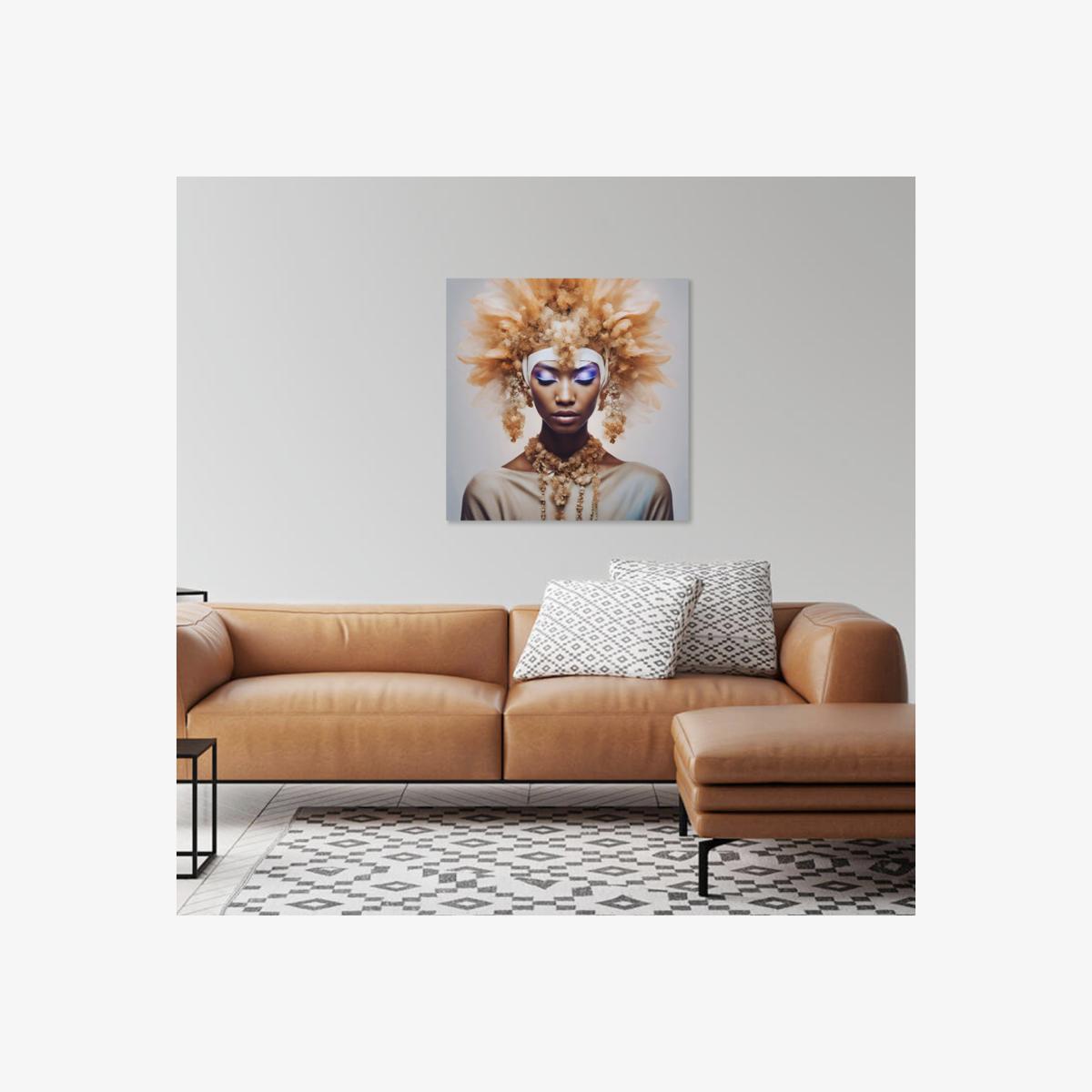 A Beautiful depiction of a Female Goddess on this stunning Canvas Print, A real Statement Piece that is both tranquil and evoking at the same time. It is a 60 x 60 cms Square Canvas Print, framed on a 2cm slimline sustainably sourced wooden frame. The Canvas is stretched tight as a drum to ensure quality and lasting longevity. This print will look amazing on almost any wall at home, work or in a public area.
