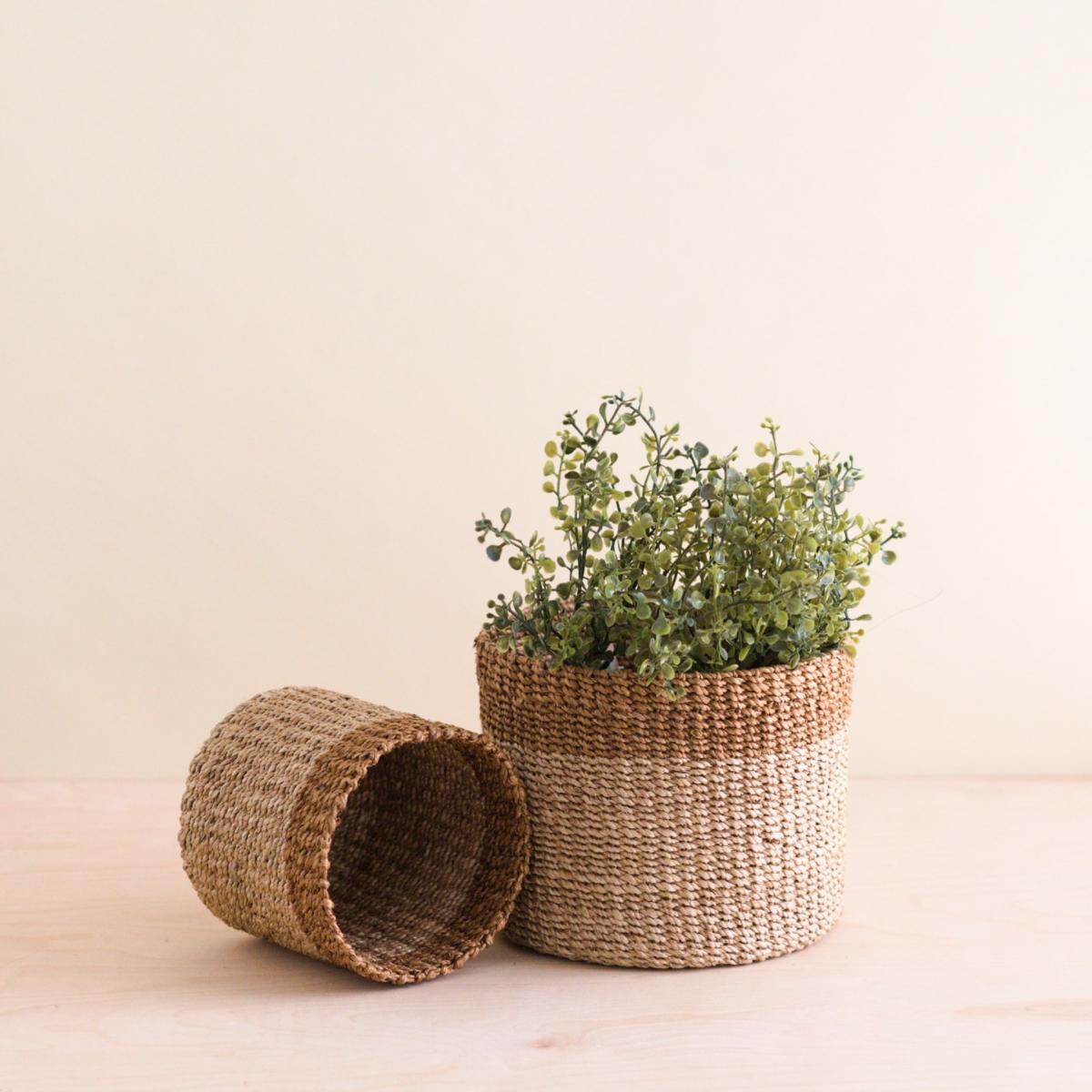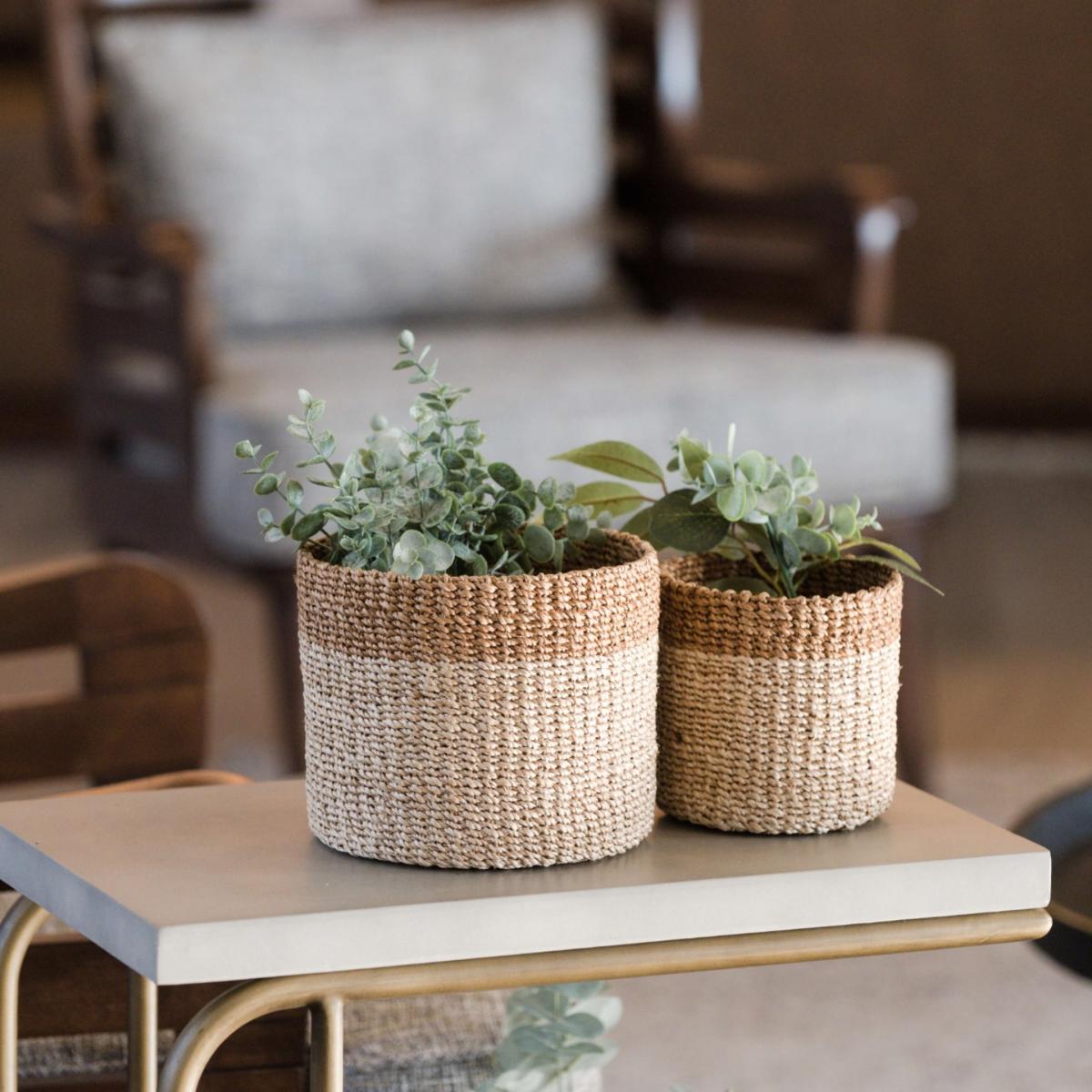 Cute and versatile, the set of 2 natural and brown tabletop mini baskets are perfectly suited to any modern home. They can be used to store everyday objects or your favorite houseplants. Our all-around handwoven baskets are stylish and functional, adding a natural vibe to just about any room. Each piece is carefully handcrafted by artisans in the Philippines, and made sustainably with manila hemp. Every purchase goes towards empowering our artisan communities. Since each piece is handwoven, please expect slight variation in design, color, shape, and size.