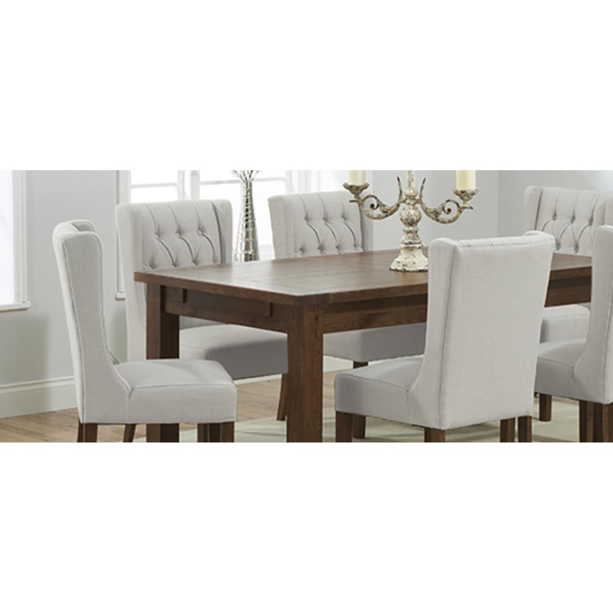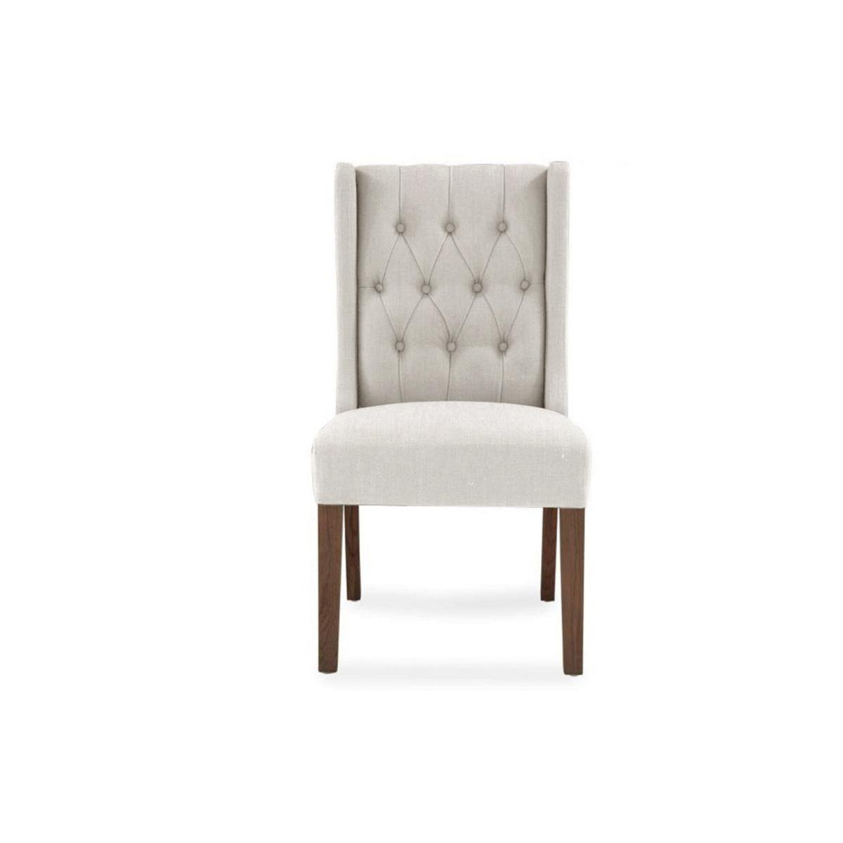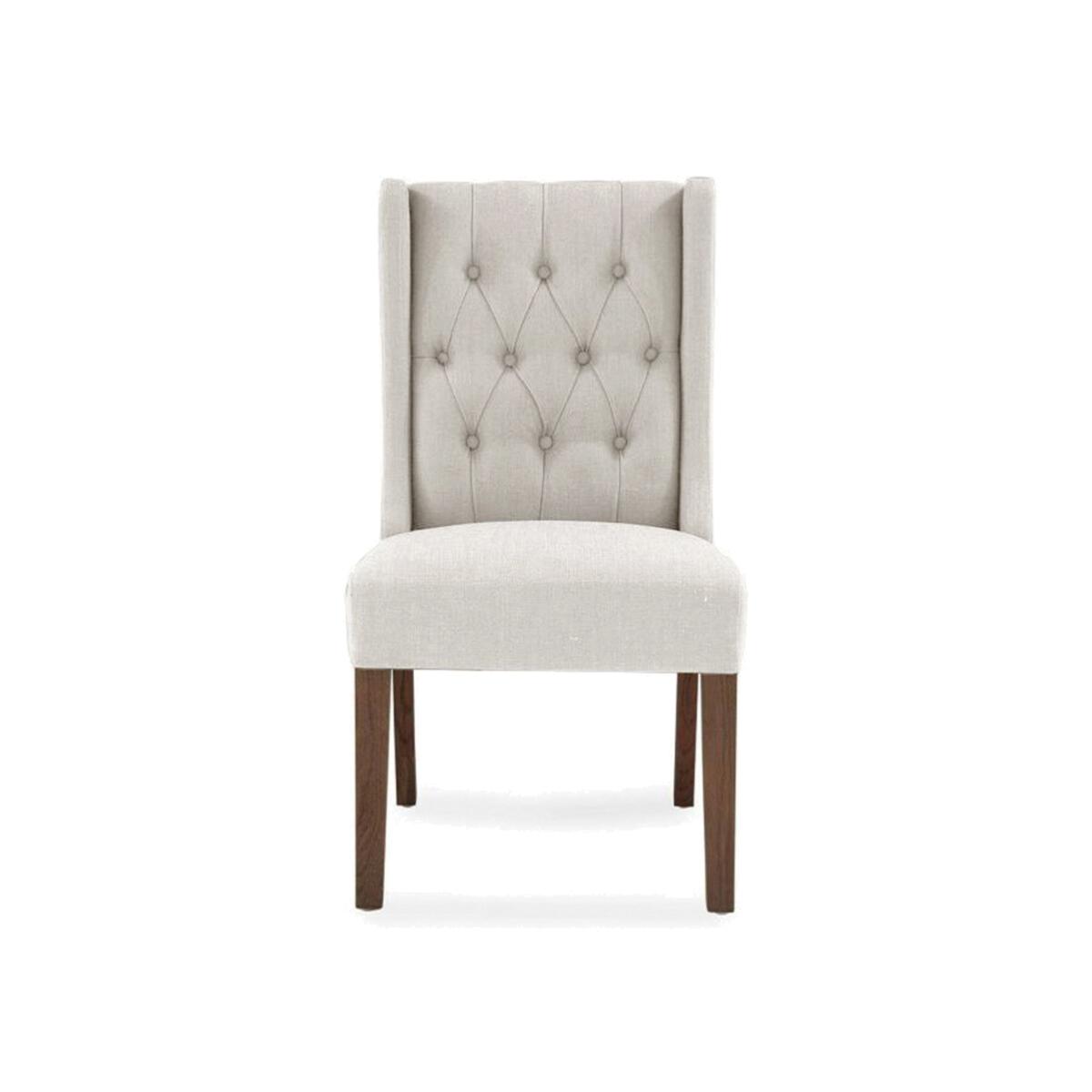 I’m a fan of the Darcy’s clean lines and natural-tone upholstery - it feels both relaxed and refined. The button-back detail and walnut-stained legs make it versatile enough for modern farmhouse, Scandi-inspired or classic schemes, and the neutral palette means you can layer in colour with cushions or tableware without clashing. Styling tip: place Darcys around a solid oak dining table, then soften with a chunky wool runner or velvet seat pads in muted teal or charcoal. In a living area, use one as an occasional chair beside a sideboard, and top with a textured cushion or lightweight throw to add depth without overpowering its simple shape.
