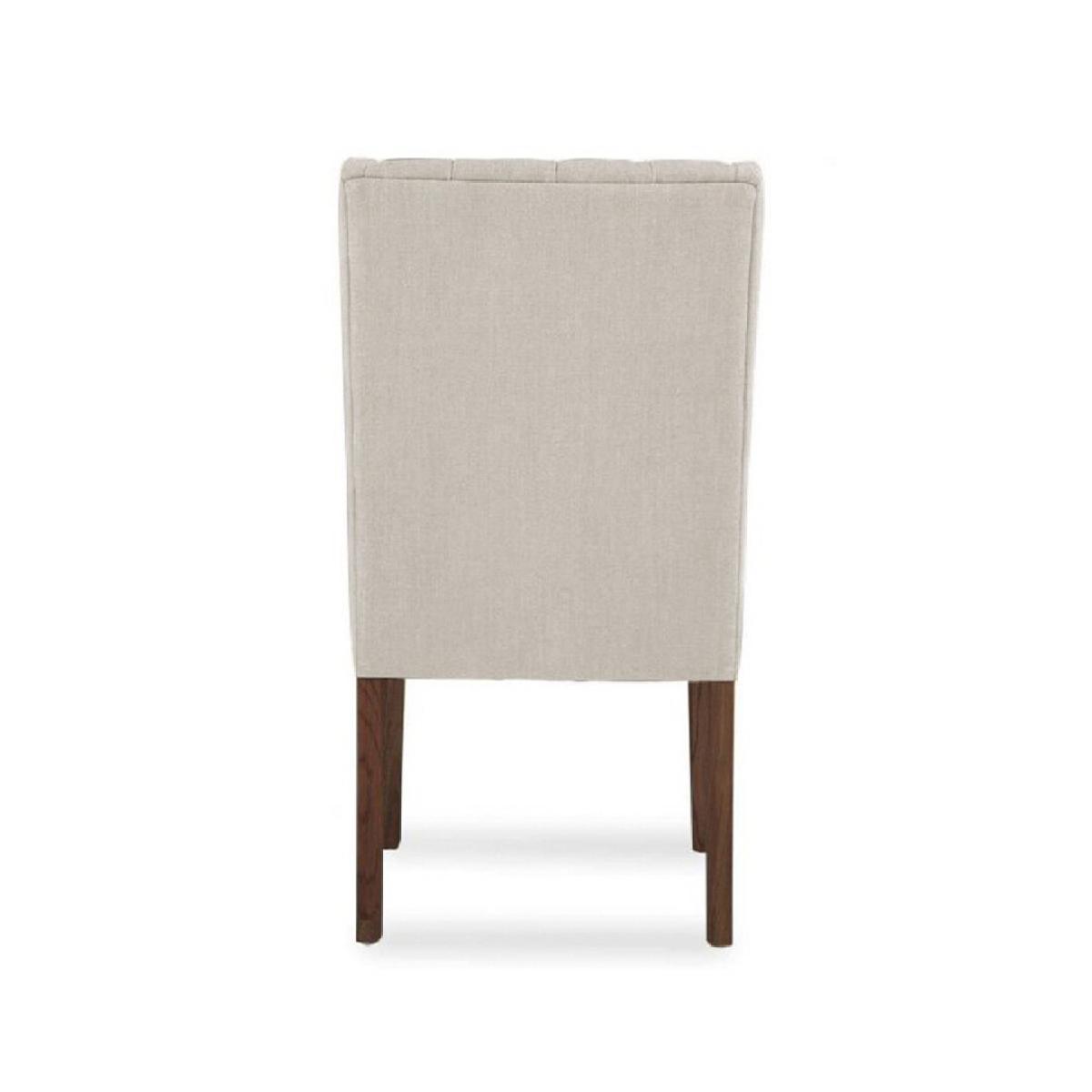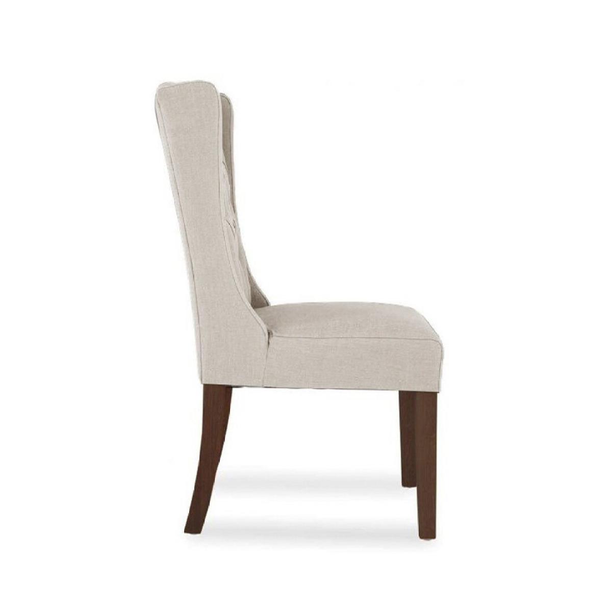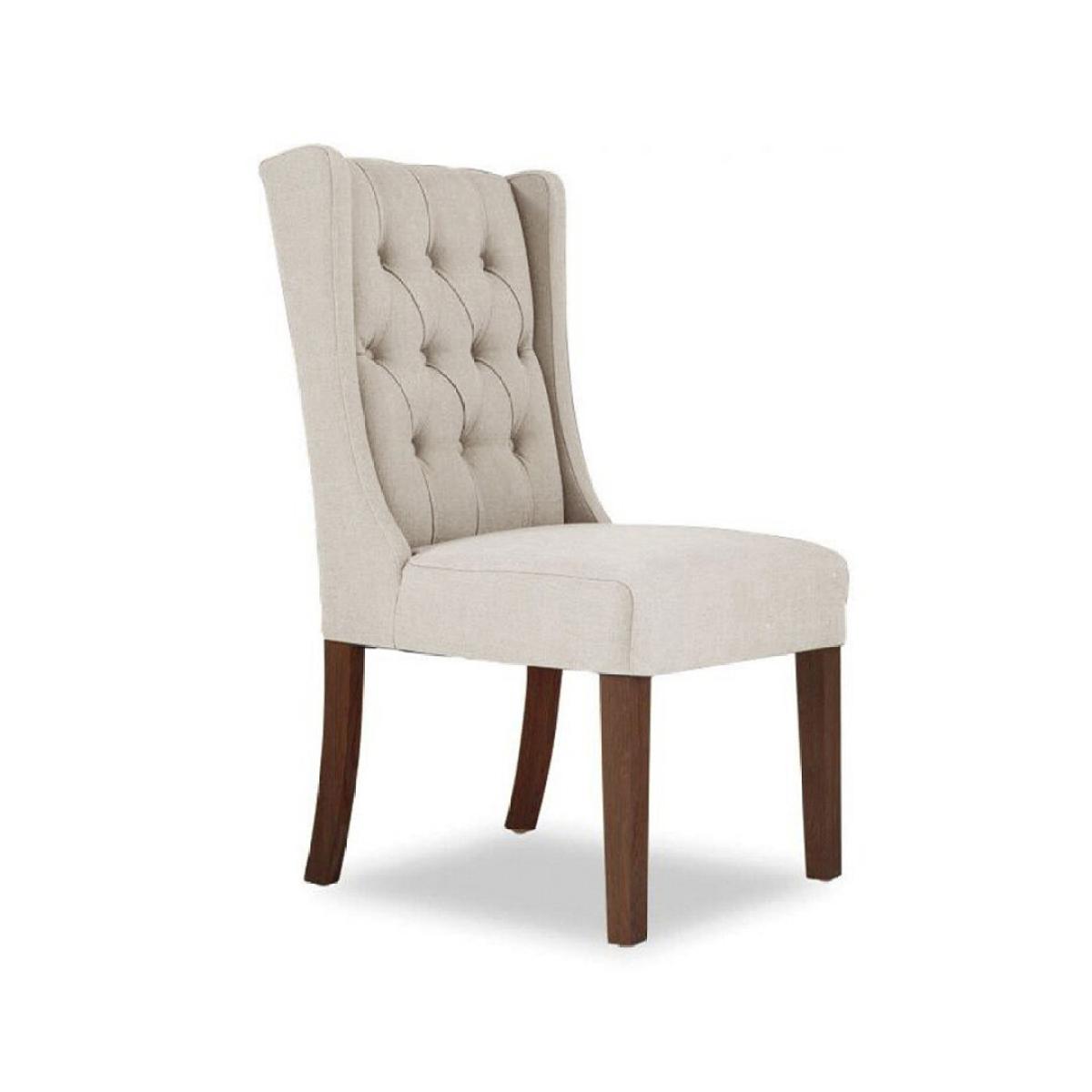 I’m a fan of the Darcy’s clean lines and natural-tone upholstery - it feels both relaxed and refined. The button-back detail and walnut-stained legs make it versatile enough for modern farmhouse, Scandi-inspired or classic schemes, and the neutral palette means you can layer in colour with cushions or tableware without clashing. Styling tip: place Darcys around a solid oak dining table, then soften with a chunky wool runner or velvet seat pads in muted teal or charcoal. In a living area, use one as an occasional chair beside a sideboard, and top with a textured cushion or lightweight throw to add depth without overpowering its simple shape.
