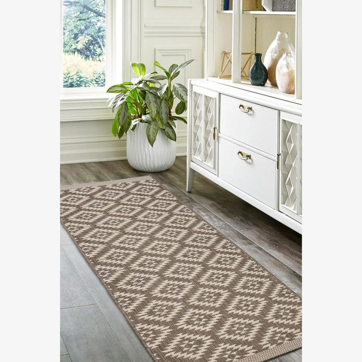 This rug is a practical and stylish choice, especially for spaces that need a durable yet eye-catching feature. I love its geometric pattern, which adds visual interest without overwhelming the room. It works particularly well in modern or contemporary interiors, but can also complement more transitional spaces. The neutral tones make it versatile, pairing easily with a range of colour schemes and furniture styles. For practical styling, consider placing it in high-traffic areas like hallways or living rooms, and layering with textured cushions or throws to soften its hard-wearing nature. Its indoor-outdoor suitability also makes it perfect for patios or sunrooms, providing a cohesive look across your home.