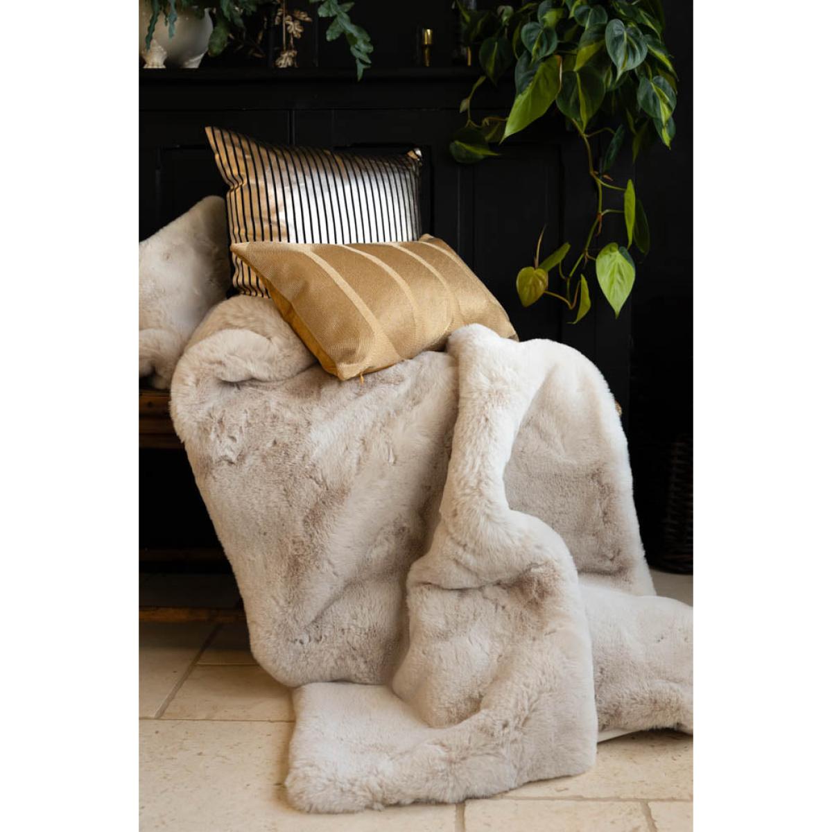 I love this faux fur throw for its plush texture and cosy feel, making it a versatile addition to both traditional and contemporary interiors. It works particularly well draped over the back of a sofa or layered on a bed for added warmth and visual interest. Its neutral tone complements a range of colour schemes, from muted palettes to bold contrasts. For styling tips, consider folding it neatly over a chaise or armchair for a touch of luxe, or letting it casually cascade to create a relaxed, inviting vibe. Practicality-wise, it's a great alternative to real fur, bringing a sense of glamour with minimal maintenance-perfect for adding comfort and style without too much fuss.