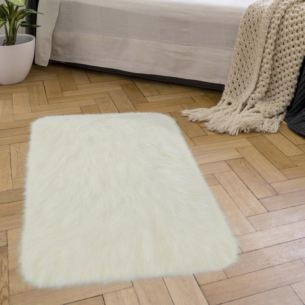 Natural Fluffy High Pile Faux Fur Sheepskin Rug - Kinsale - Neutral / 150cm