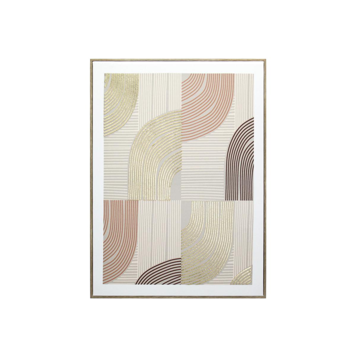 Make a bold statement in your bedroom, hallway, or living room with this Natural Foiled Wavy Framed Print. The design features dynamic, groovy shapes paired with elegantly arched lines, creating a sense of movement and depth. Its natural colour palette of earthy tones brings a calming yet striking energy to any space, while the foiled accents add a touch of sophistication and modern flair. This piece is perfect for those looking to introduce both artistry and a sense of tranquillity into their home decor.