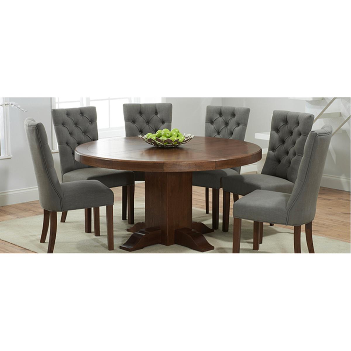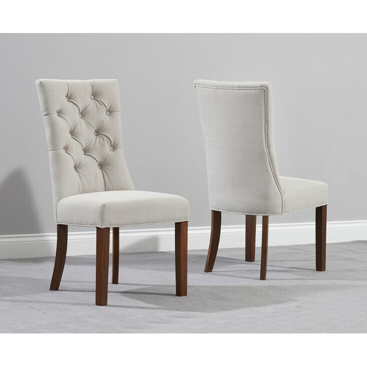Francois Fabric Dark Oak Leg Dining Chairs with soft foam seats and vacuumable fabric.