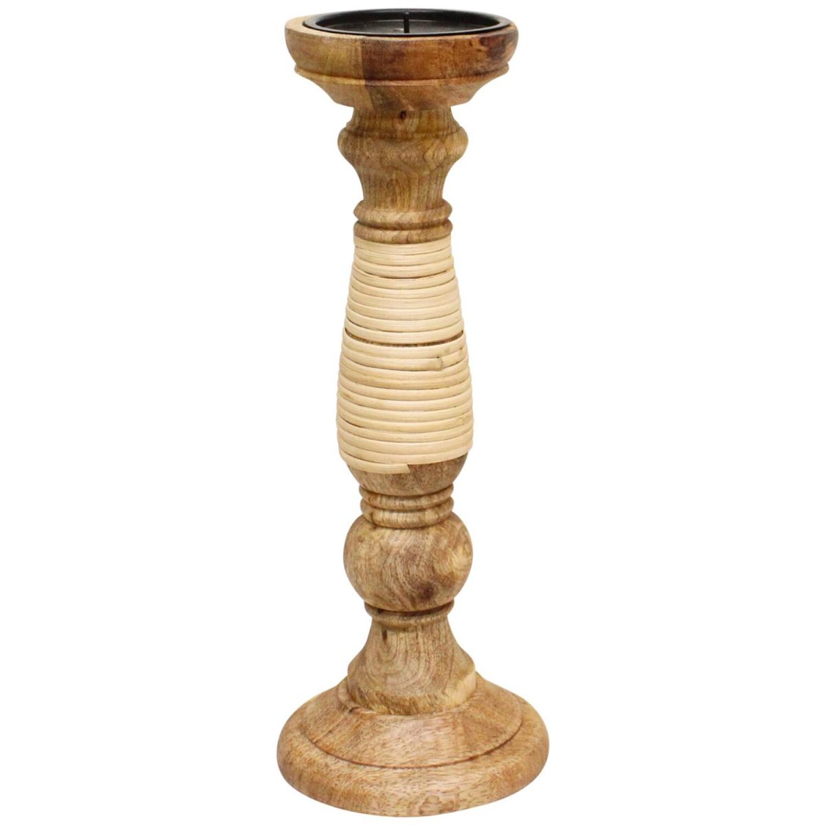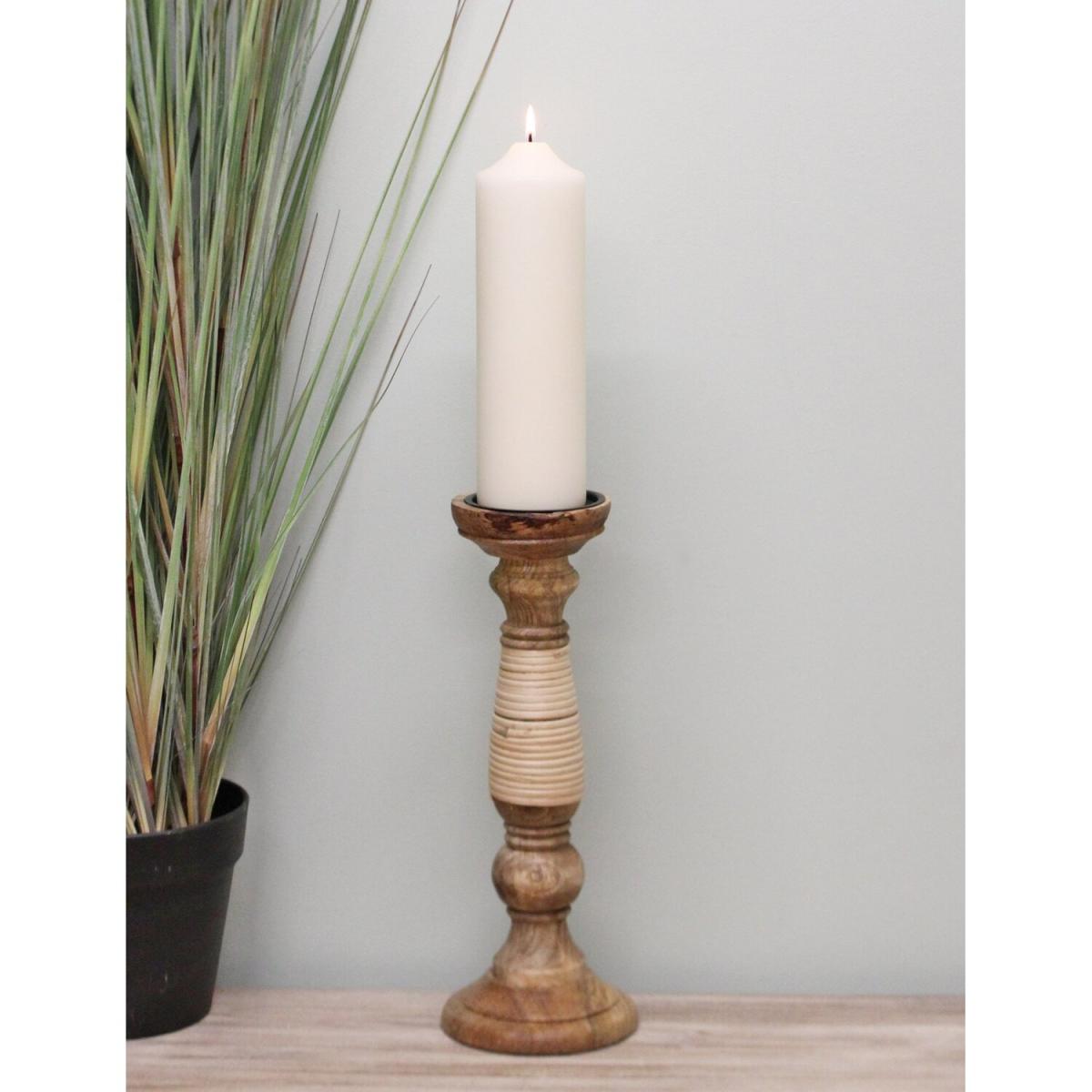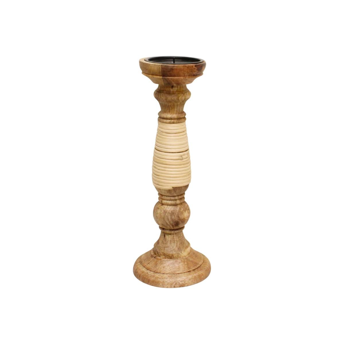 A simple and stylish wooden candle holder designed to fit a maximum 7cm diameter pillar candle. Beautiful on it's own or purchase a pair for a mantelpiece. Made of Mango Wood with Rattan detailing and a metal candle holder to the top.
