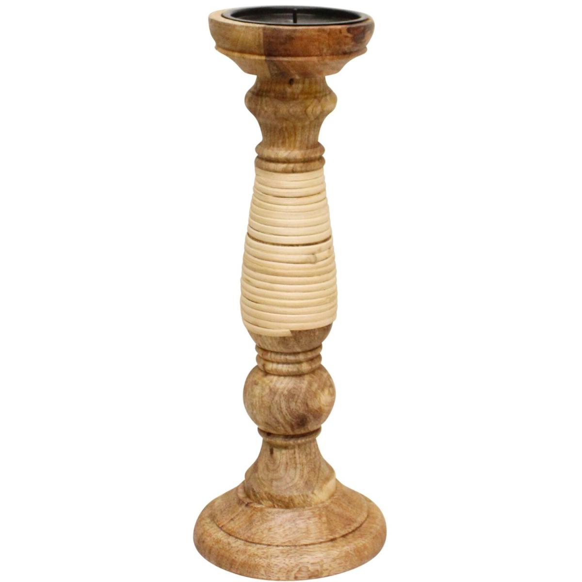 Natural Interiors Mango Wood Candlestick, 35cm - Brown