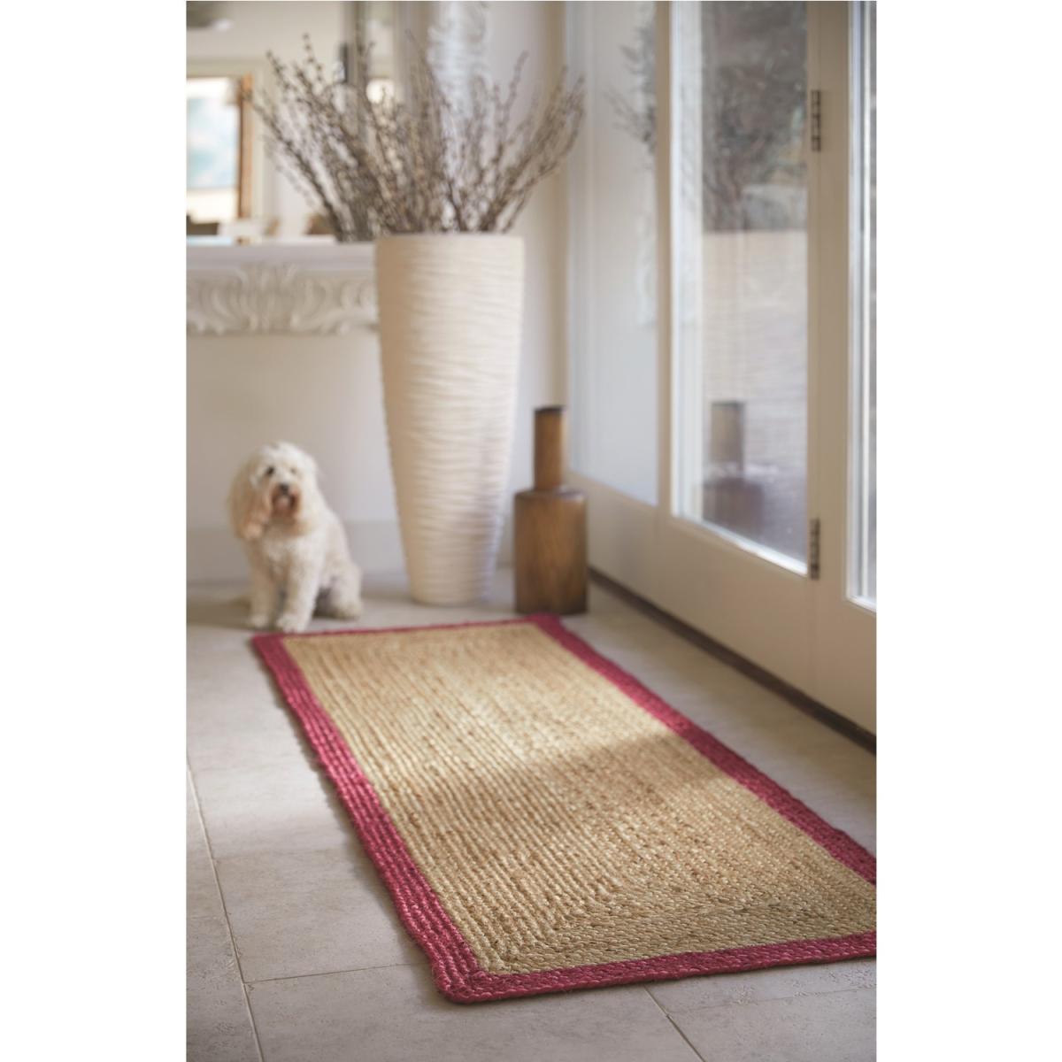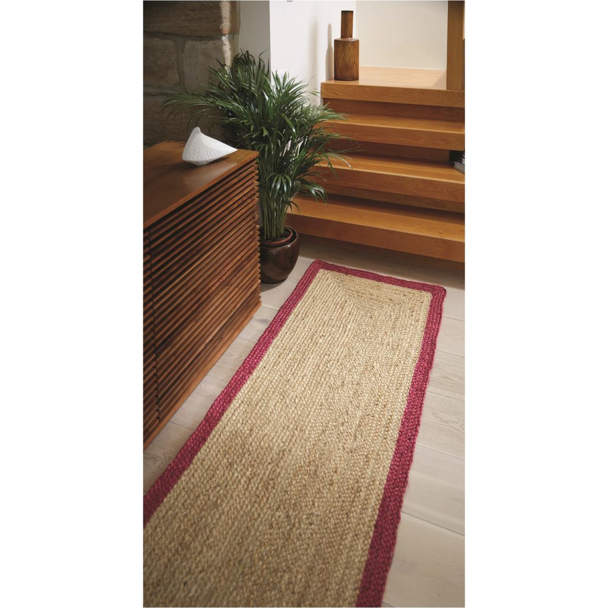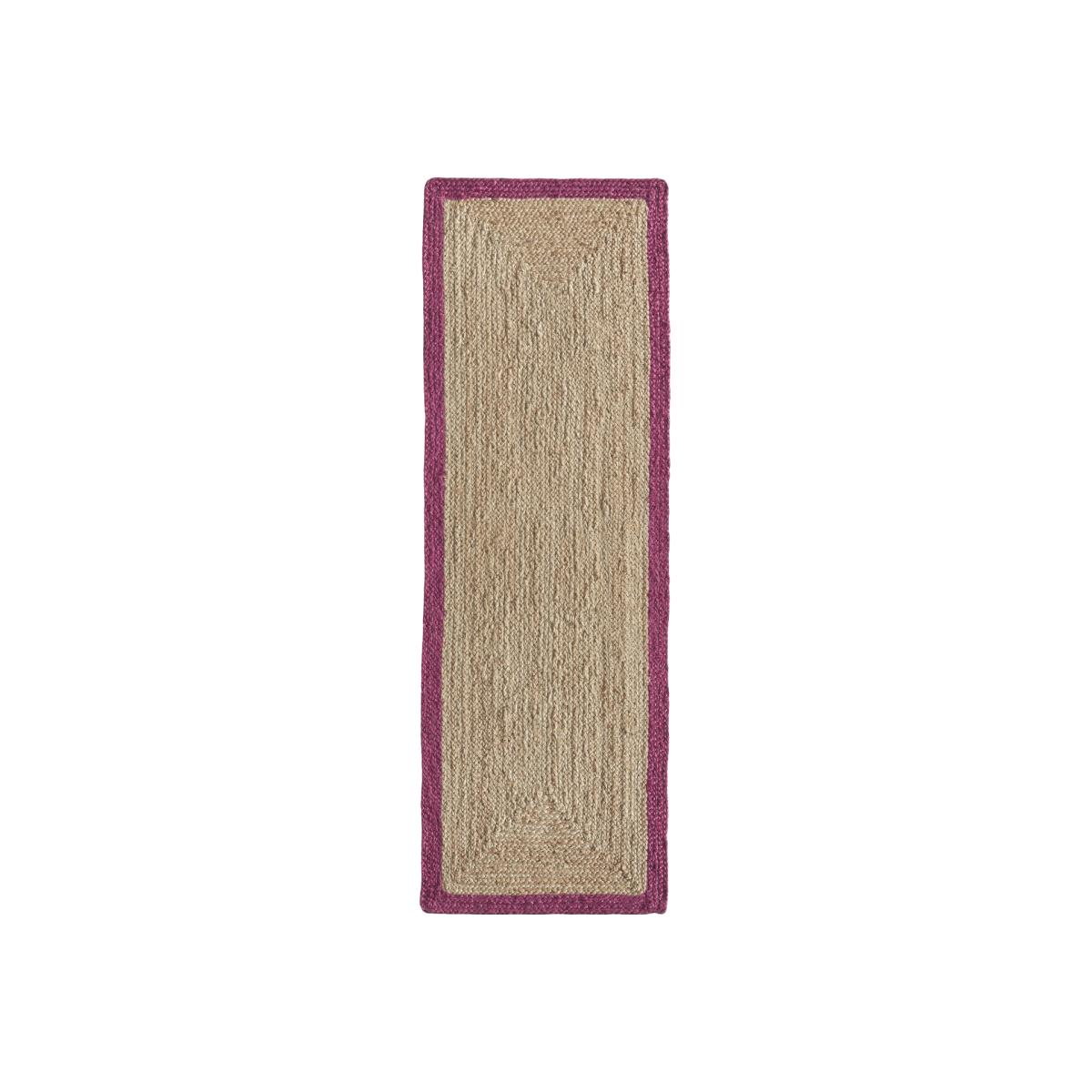 Natural Jute Runner Rug with Raspberry Pink Border - 67x200cm - Ripley
