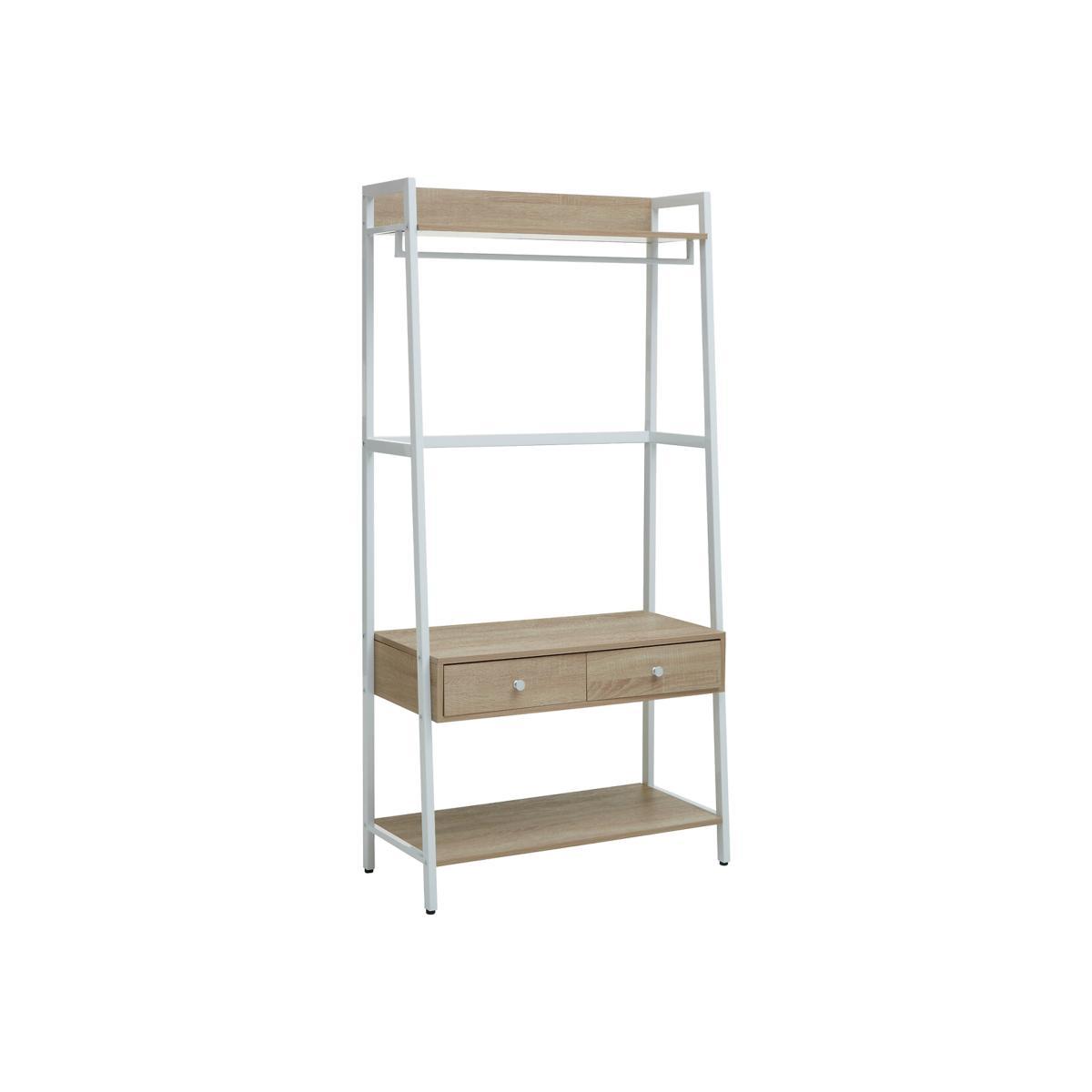 Natural Oak Effect Shelf Unit and Hanging Storage with White Frame