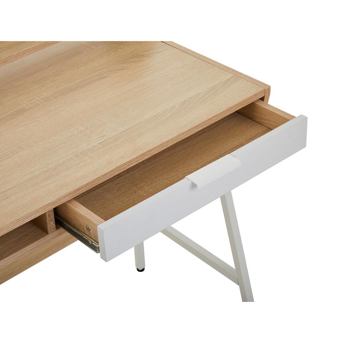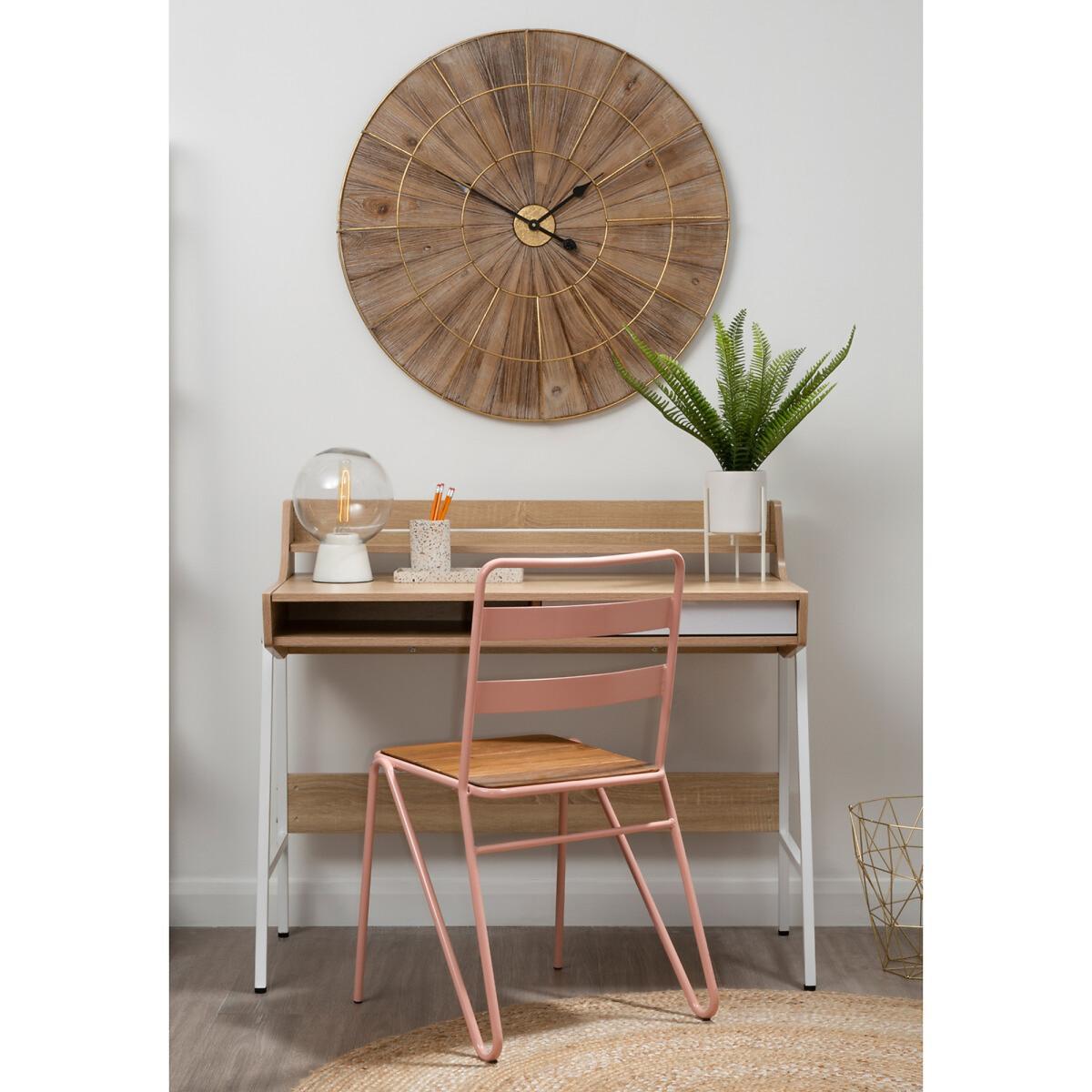 I’m a fan of this oak-effect desk for its clean lines and fresh white frame - it brings a light, airy feel without looking too cold. It works particularly well in Scandi-inspired or modern minimalist schemes and is compact enough for a small home office or bedroom corner. To style it, keep the surface clutter-free with just a slim desk lamp, a small pot plant and a tray for stationery. Above, add a simple shelf or pin-board for notes and prints. Tuck a woven basket or slim filing box underneath for extra storage without spoiling the streamlined look.
