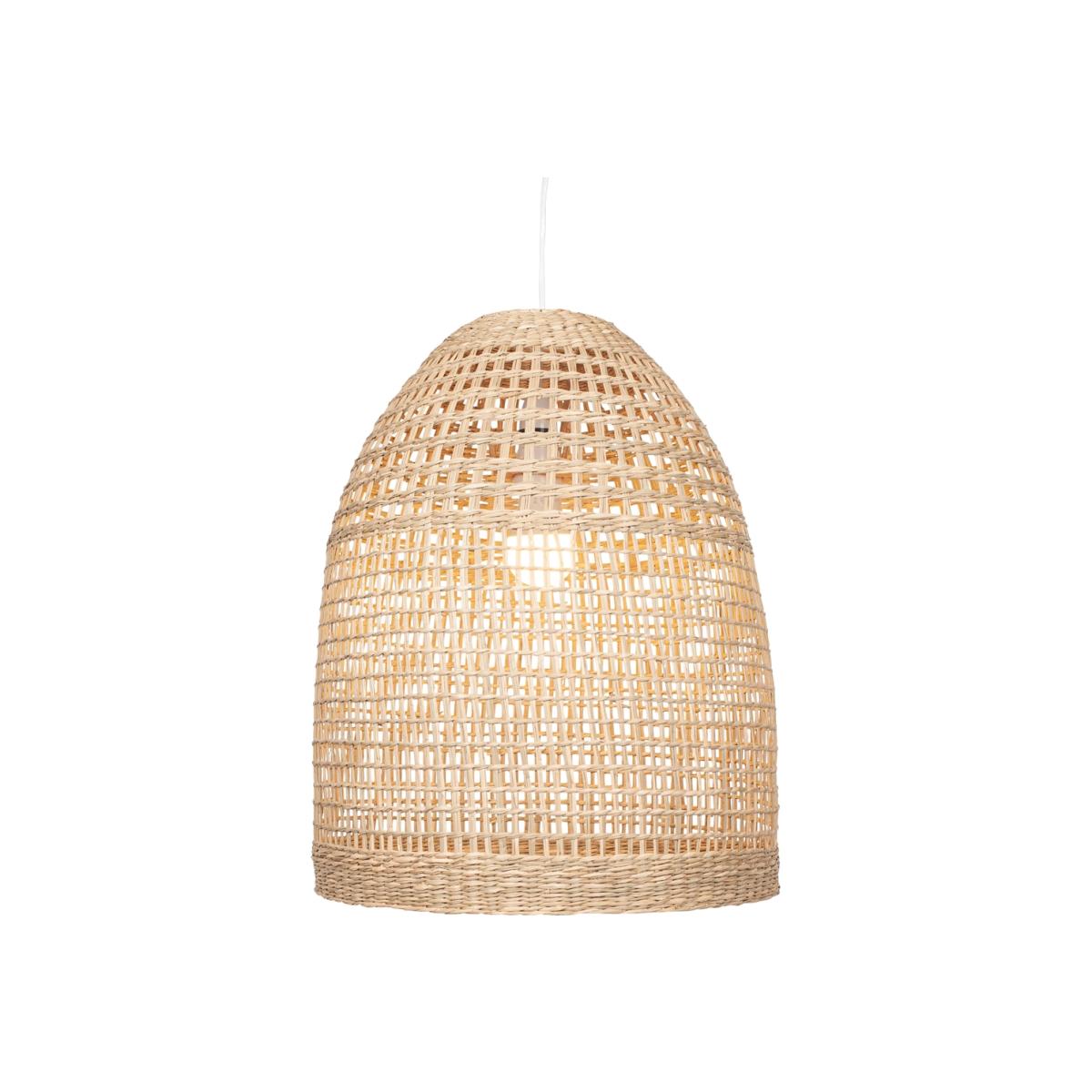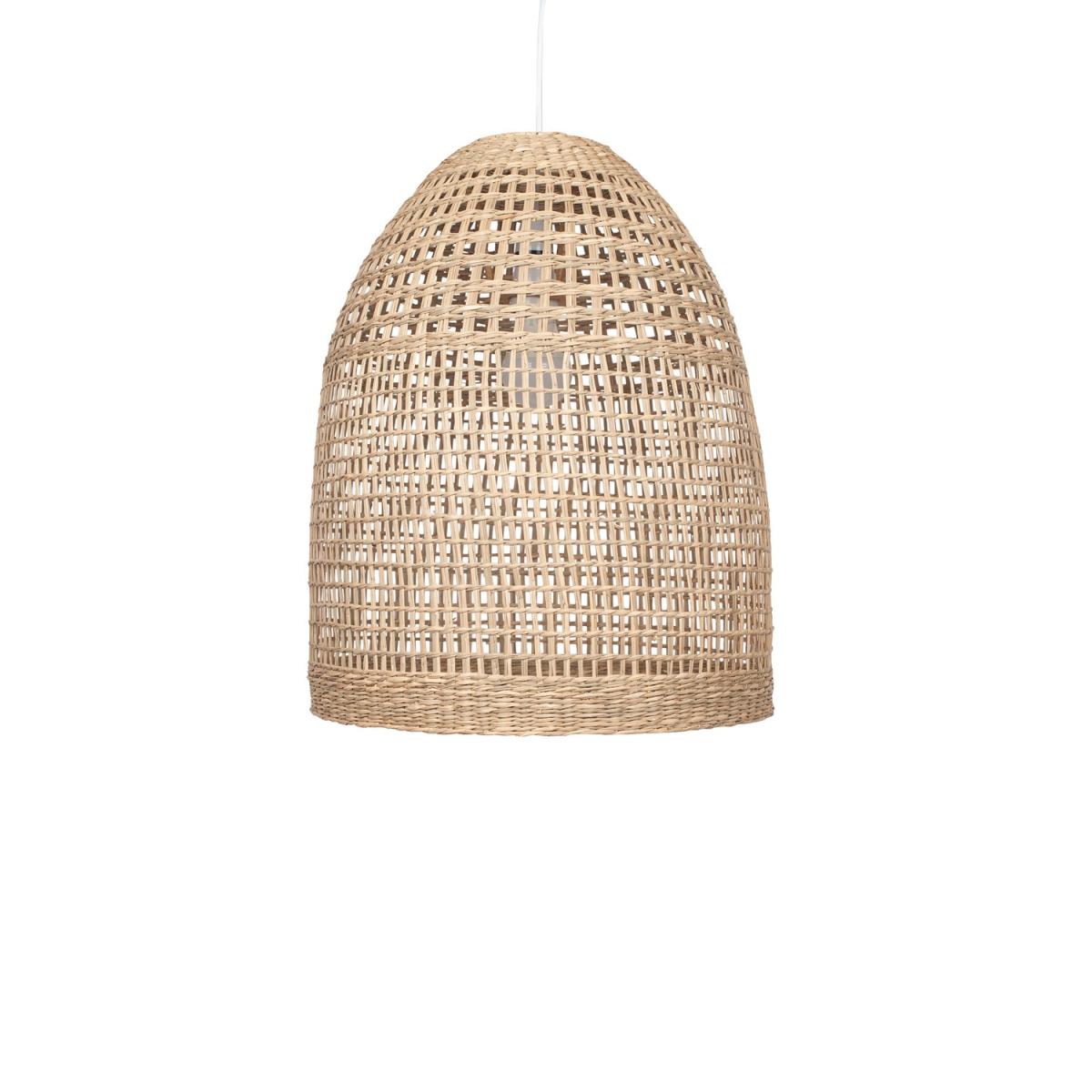 Dimensions H48cm x W40cm x D40cm Hand woven from delicate seagrass this tall dome pendant can be attached to your existing ceiling fitting and has a pretty linear pattern allowing the soft light to shine through and create patterns on the around the room. Features. Trendy woven finishSoft natural design. Easy to style in any living area. Open structure creates beautiful light effects Assembly not required..