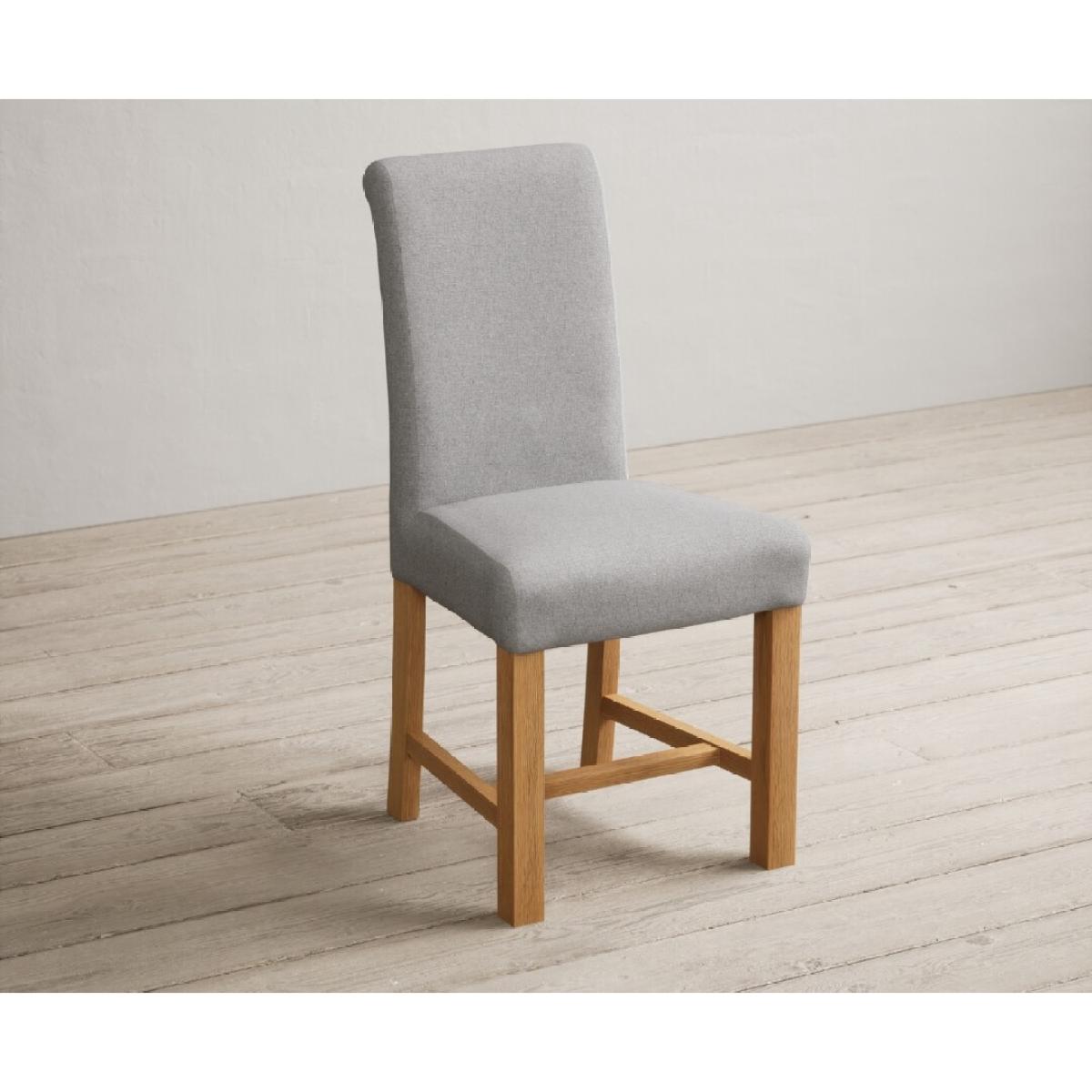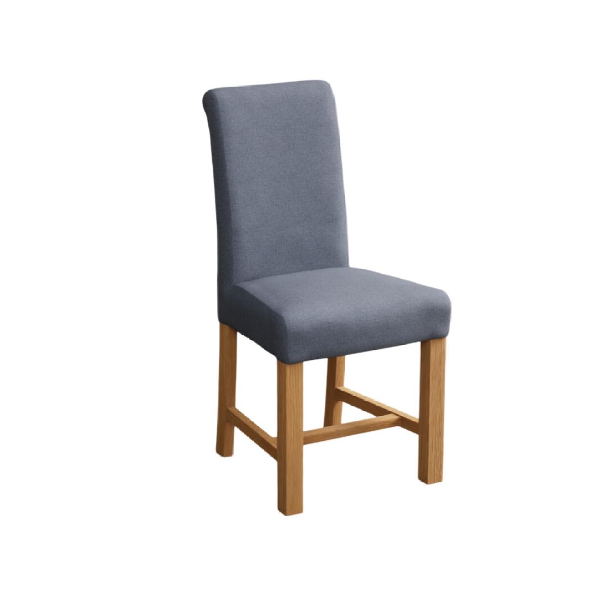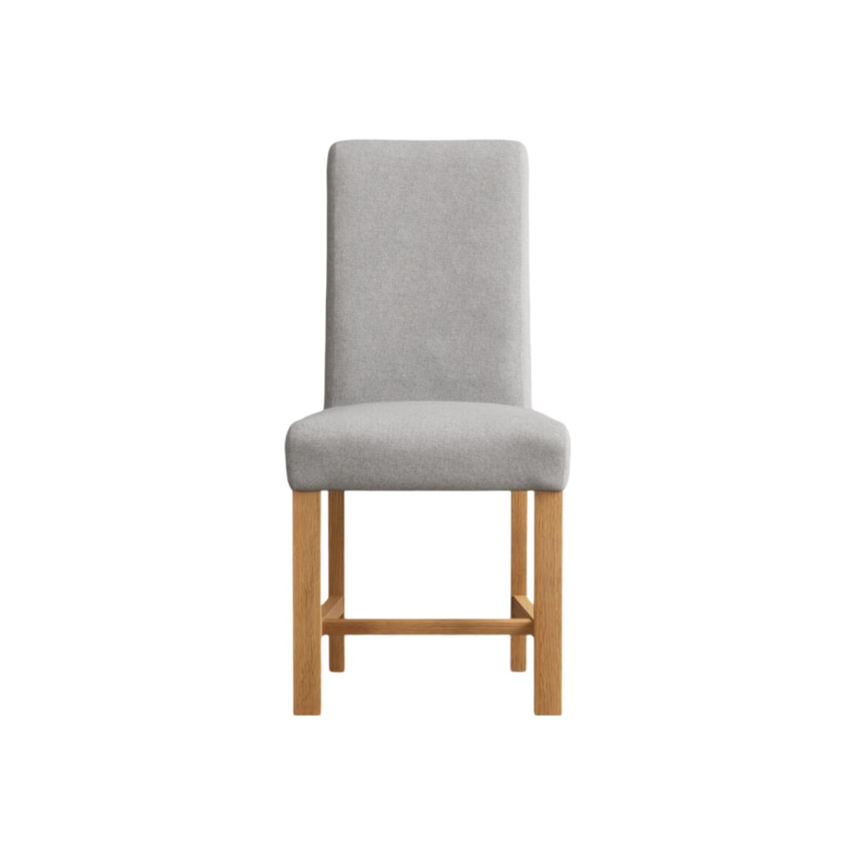 I’m a fan of these scroll-back chairs for their clean lines and solid oak legs, which bring a relaxed yet polished look to a dining space. The soft grey upholstery is a versatile neutral that sits comfortably in Scandi, coastal or contemporary schemes, while the curved back adds just enough interest without overwhelming the room. For styling, team them with a simple light-wood table and layer in natural-fibre rugs or woven accessories to introduce texture. If you’d like a co-ordinated feel, echo the grey in linen cushions or table linens; alternatively, swap in a couple of darker chairs at the ends for a casually collected vibe.