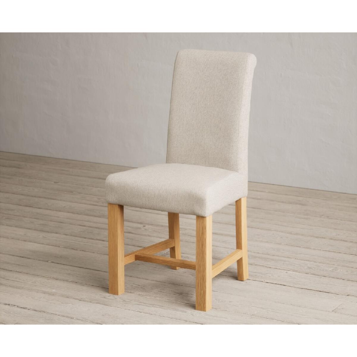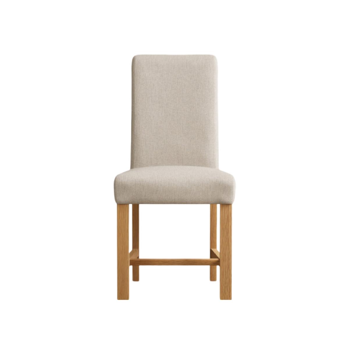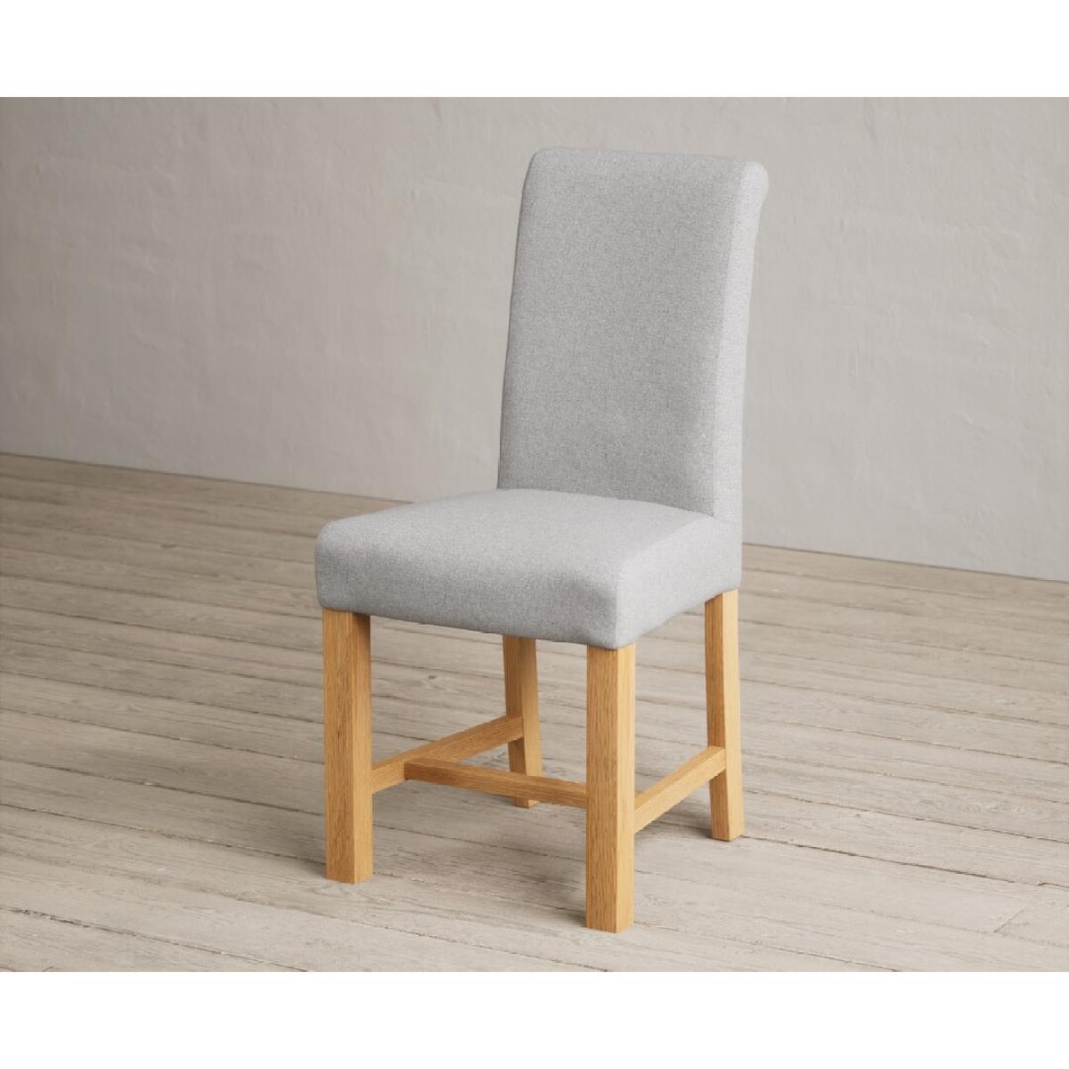 I’m a fan of these scroll-back chairs for their clean lines and solid oak legs, which bring a relaxed yet polished look to a dining space. The soft grey upholstery is a versatile neutral that sits comfortably in Scandi, coastal or contemporary schemes, while the curved back adds just enough interest without overwhelming the room. For styling, team them with a simple light-wood table and layer in natural-fibre rugs or woven accessories to introduce texture. If you’d like a co-ordinated feel, echo the grey in linen cushions or table linens; alternatively, swap in a couple of darker chairs at the ends for a casually collected vibe.