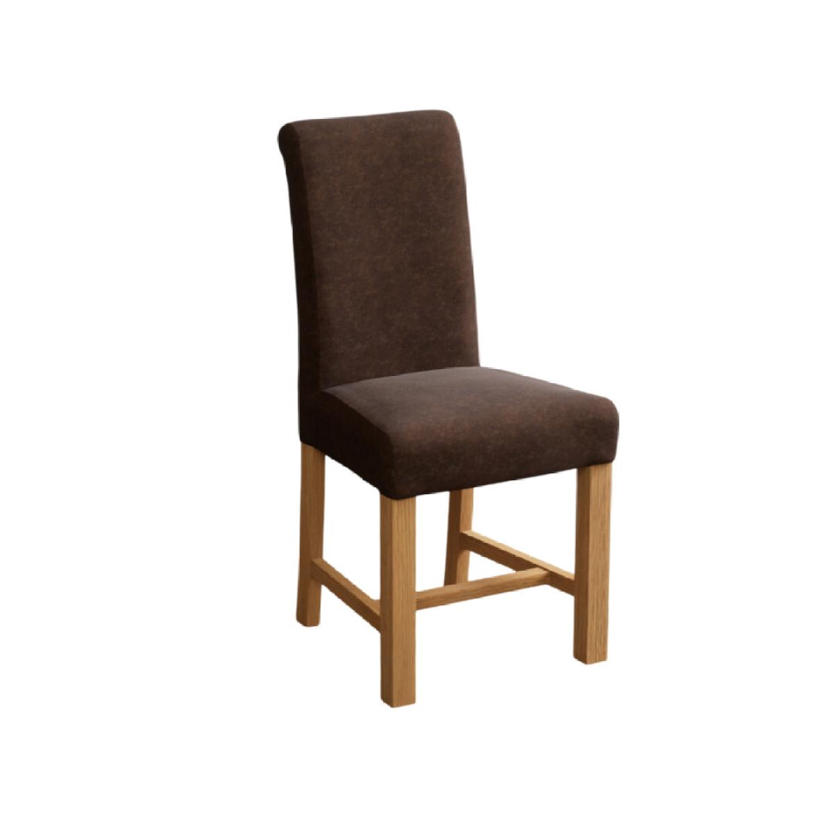 Braced Leg Fabric Dining Chairs are beautifully crafted and comfortable chairs with classic scroll back designs.