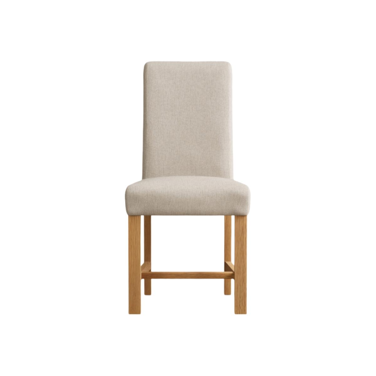 I’m a big fan of the scroll-back dining chair for its clean, unfussy lines and subtle rolled detail at the top. The pale linen-effect upholstery and light oak legs slot effortlessly into Scandi-inspired, modern farmhouse or coastal schemes without overwhelming the space. Styling tip: mix a couple of these chairs with a bench for a relaxed, collected look; layer in a muted linen cushion to introduce texture; and pair with a mid-toned wooden table to lend depth. Swapping cushion covers seasonally keeps the scheme fresh.
