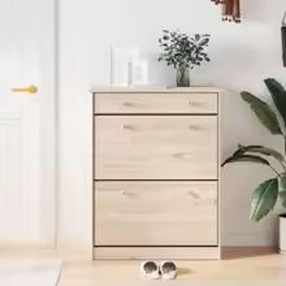 Natural Shoe Cabinet Wood Storage Organiser for Entryway - Natural