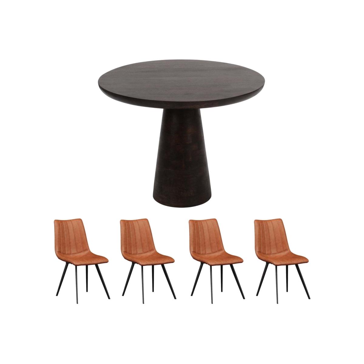 Natural Solid Dark Mango Wood Round Dining Set Table With 4 Chairs - Dark Wood