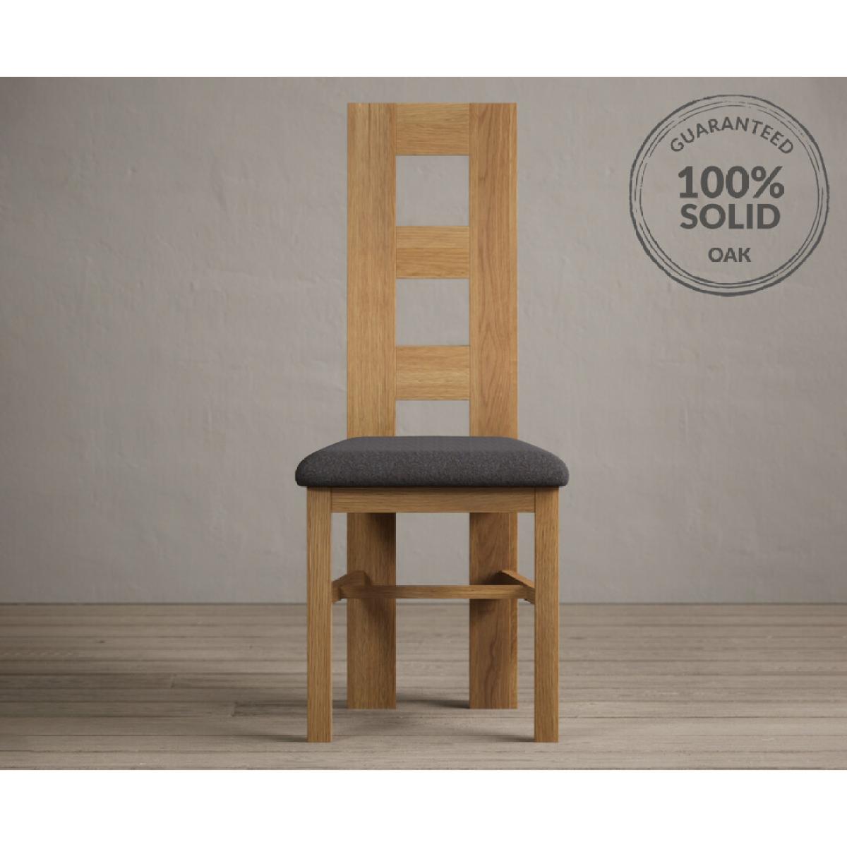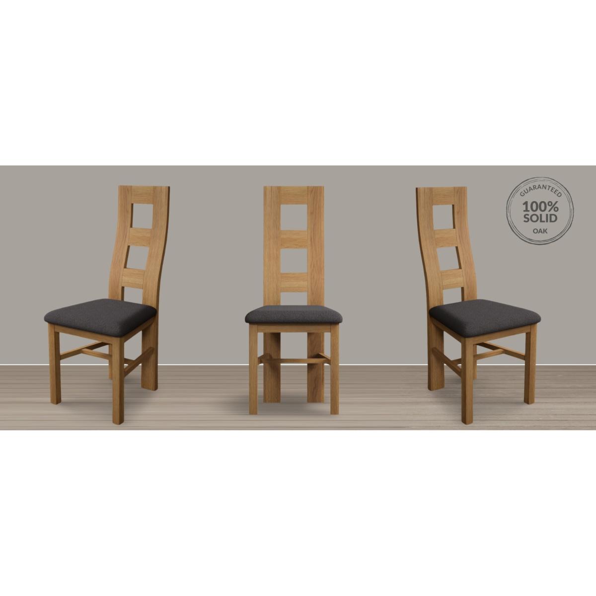 Natural Solid Oak Flow Back Dining Chairs with Charcoal Grey Fabric Seat Pad