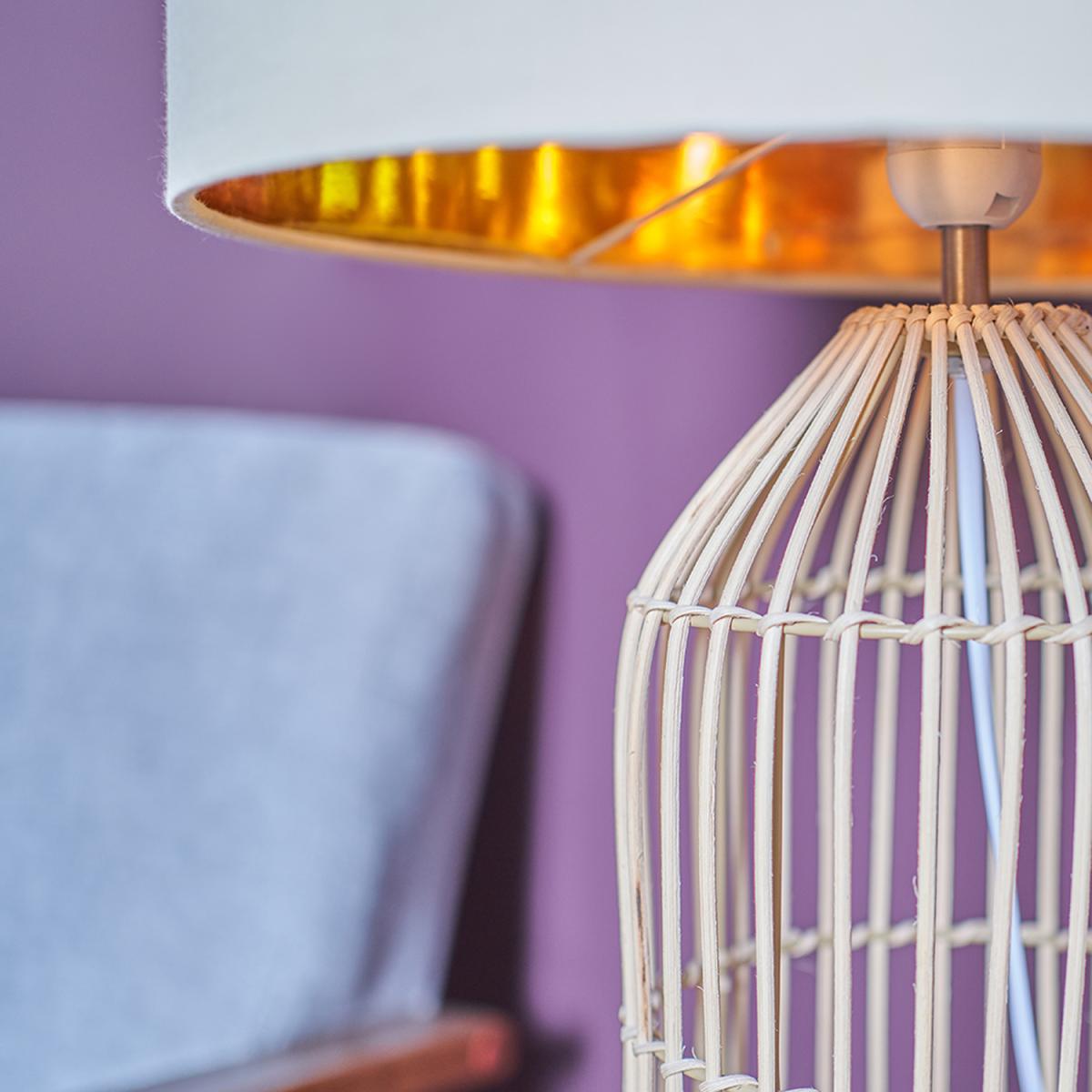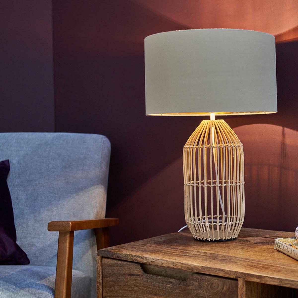 Make a global style statement with the large Hollins table lamp. The beautiful base is crafted from rattan, and you can choose from the drama of black or a laid-back natural tone. Add a large drum in a colourway of your choice, and a sideboard or corner of your room is instantly transformed. The rattan Hollins table lamp brings texture and warmth to your space, and is perfect for Scandi, Boho, Rustic and Contemporary Country looks. Accessorise with throws, cushions, and plants to add layers of interest, inspired by global travels. We love the Hollisn table lamp for adding instant interest to a room. Requires one 40W ESE27 bulb or LED equivalent