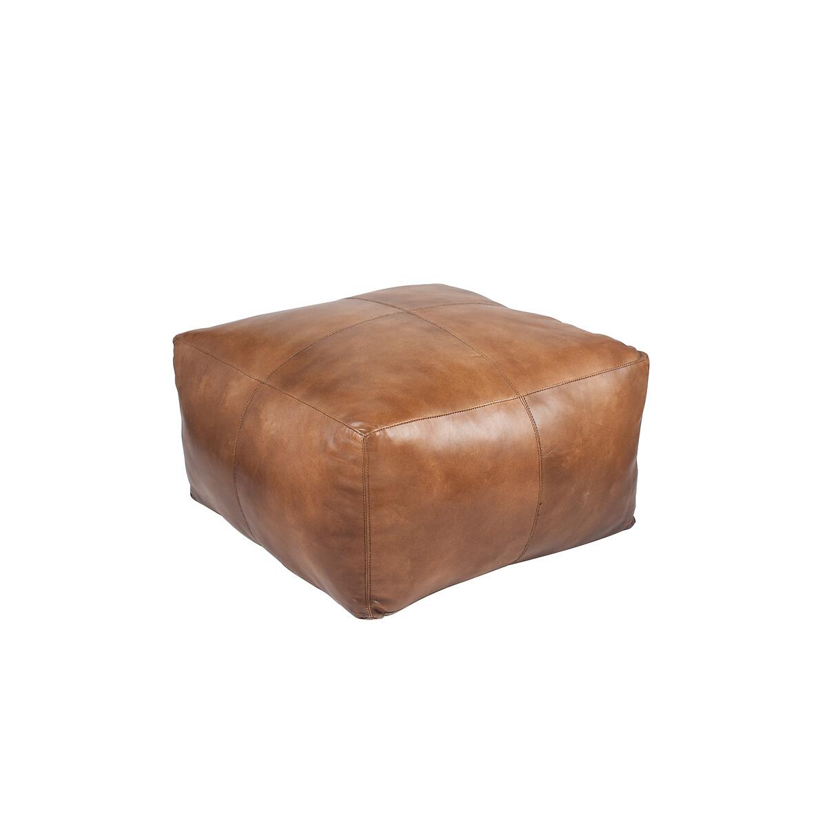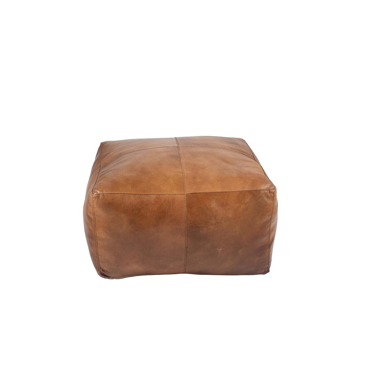 Natural Tan Leather Square Pouffe
