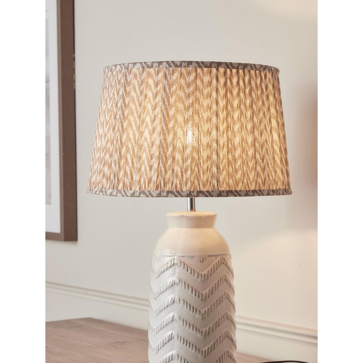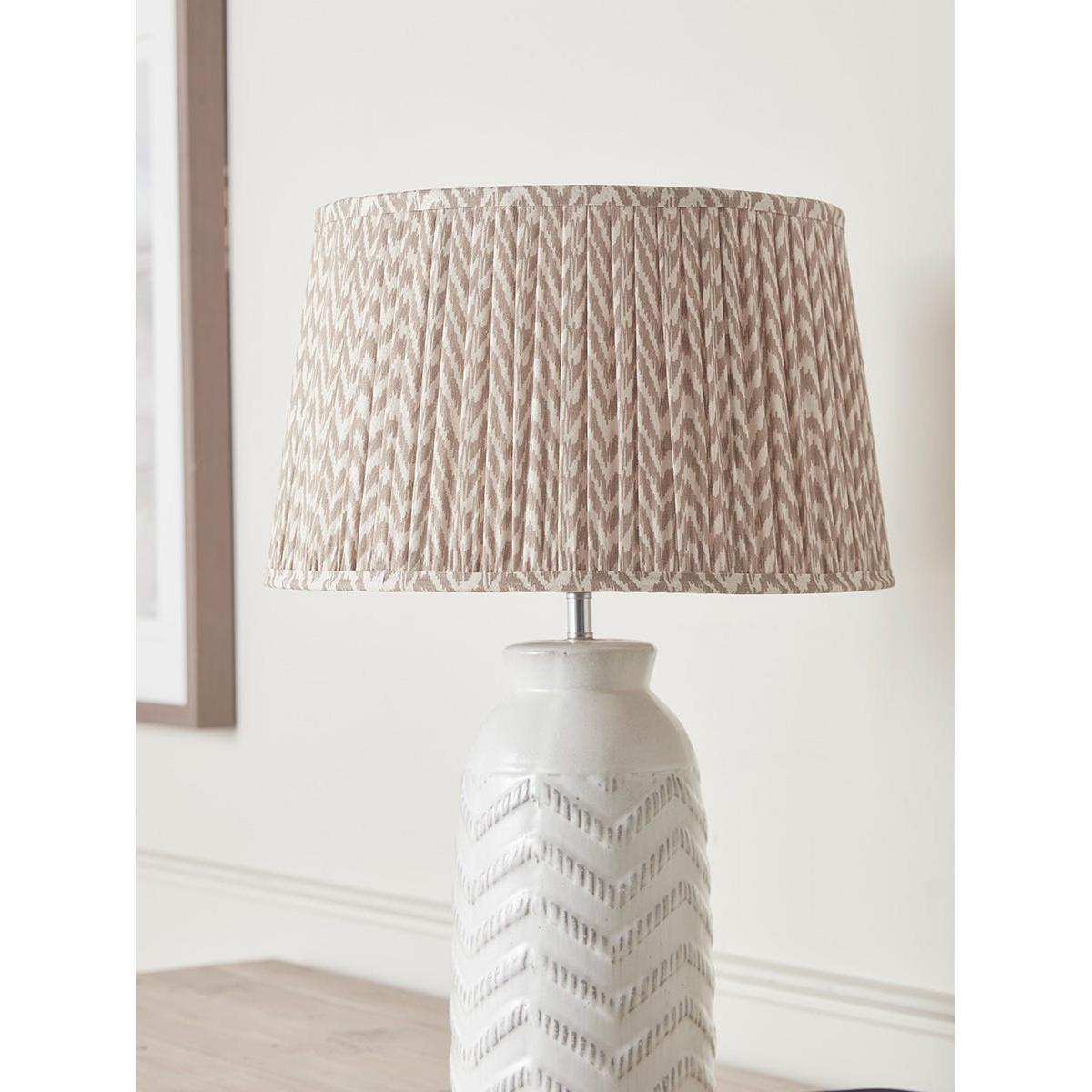 With luxurious mushroom pleats to the fabric, our new lampshades are a simple but effective way to give any of our lamp bases a seasonal uplift. The gently tapered shades are made from fabric in a subtle ikat style chevron pattern in complementing neutral tones.  Discover how to create the perfect lighting scheme for your home using our Lighting Buying Guide.