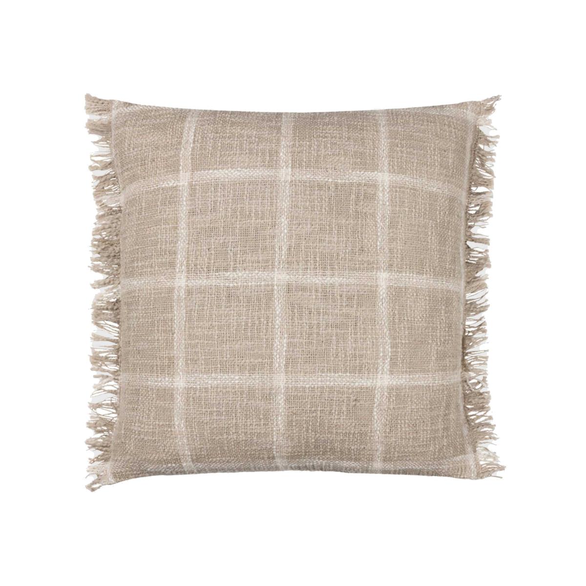 The Natural Beige Tartan Cushion blends modern classics with relaxed living, creating a timeless piece for your home. With its contrasting check weave in rustic hues, it adds a touch of warmth and character to any interior. Crafted from soft slub cotton, it offers both comfort and durability, making it perfect for everyday use. The double-sided fringed trim adds a playful and stylish accent, elevating its visual appeal. Whether placed on a sofa, armchair, or bed, this cushion effortlessly enhances the ambiance of your living space with its fusion of traditional charm and contemporary style.