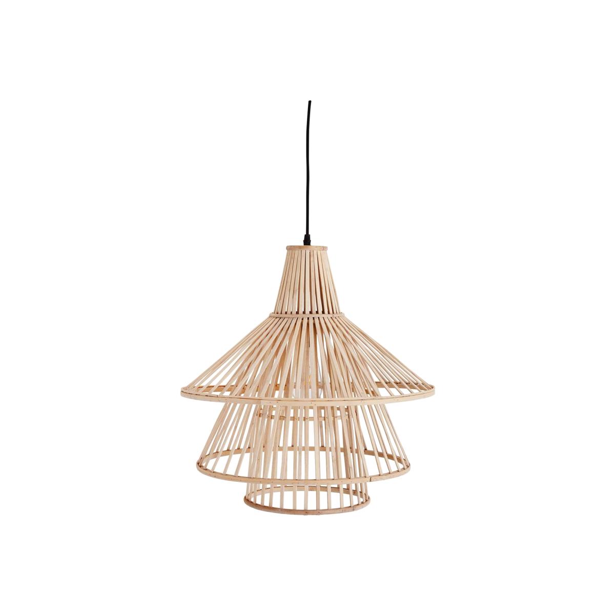 Design. With a natural finish and simplistic design, the Natural Tiered Bamboo Pendant is a subtle way to style up your ceiling. Three separate layers make up the unique shape of its lightshade, while the caged effect offers an open and airy look that’s right at home in modern bohemian schemes.