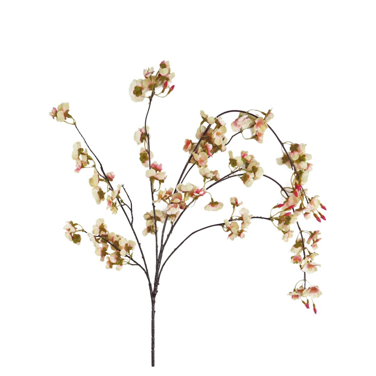 Large blossom spray stem with silkflowers and a wired shapable stem. This particular design is slightly less rigid than some of our blossom stems so is ideal for creating arrangements with a slight trailing effect or for flower arches. Can be used to make arrangements with our other artificial flowers or as decorations on their own. These are easy to cut down shorter using a pair of wire cutters if required. Some of our photos show vases to give an idea of size and possibilities for arrangement, but no vases or planters are included with this foliage.