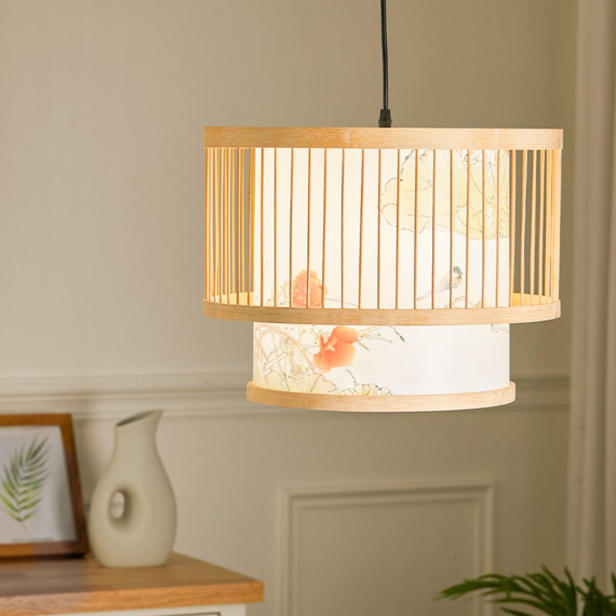 Natural Wicker Hanging Pendant Celling Light With Bamboo Weaving Lampshade - Light Brown