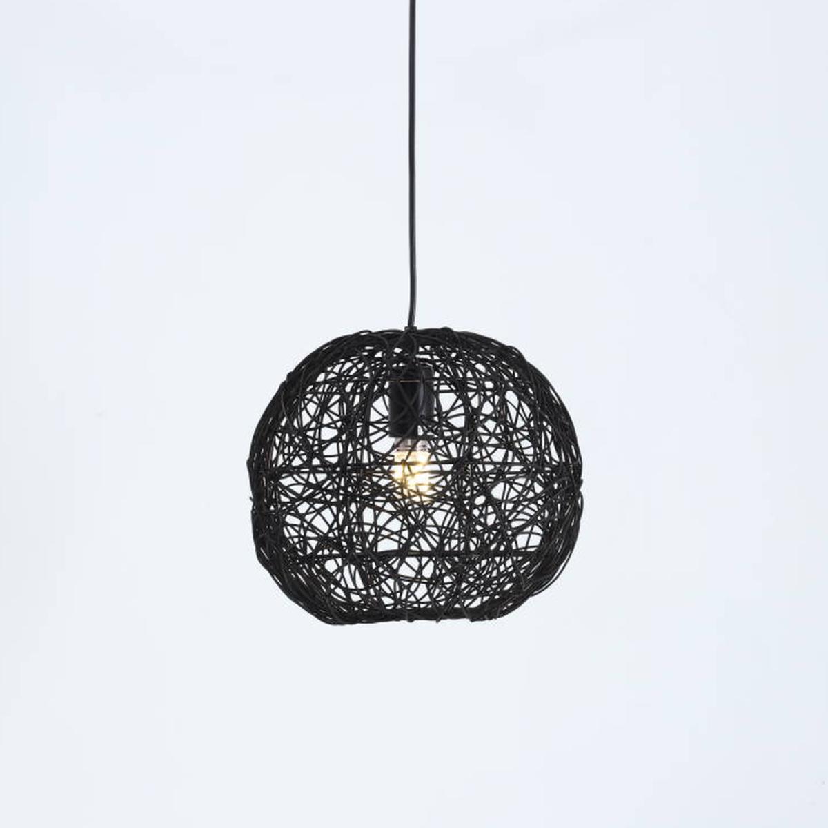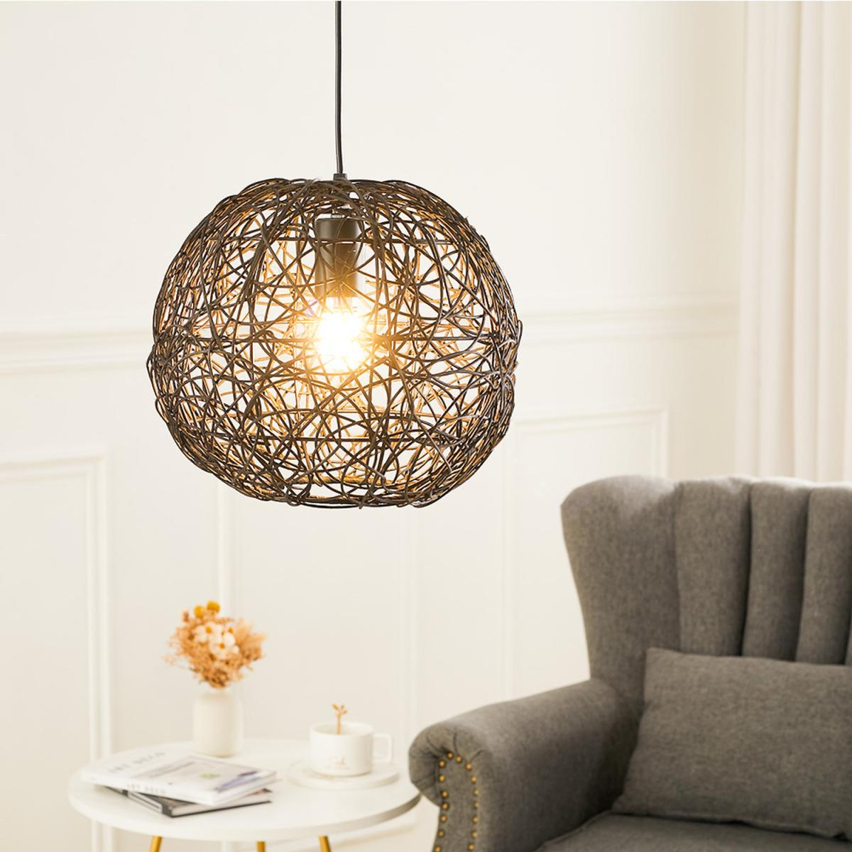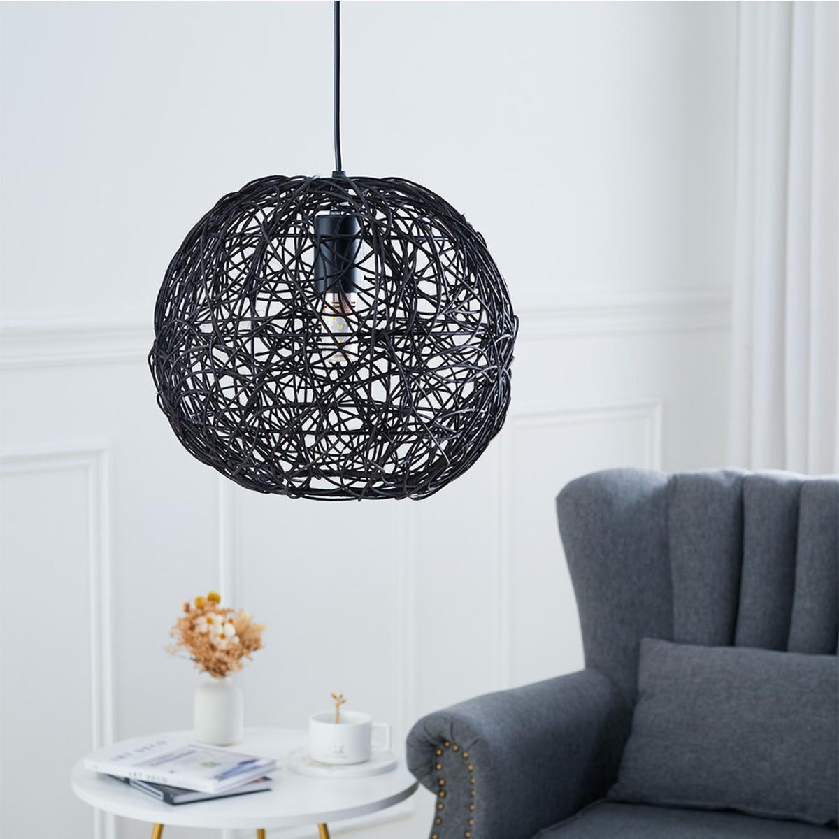 This birdcage design ceiling light shade(bulb not included) comes in a black rattan finish, woven crisscross, simple and natural. It will make a beautiful focal point and provide a romantic lighting effect and appropriate room atmosphere. Comes with a 95cm electric wire and mounting accessories, compatible with standard E27 socket light bulb, it simply fits to your existing ceiling light socket - No wiring required. Perfect for adding a modern style to any room in your home, bring a pleasant experience.