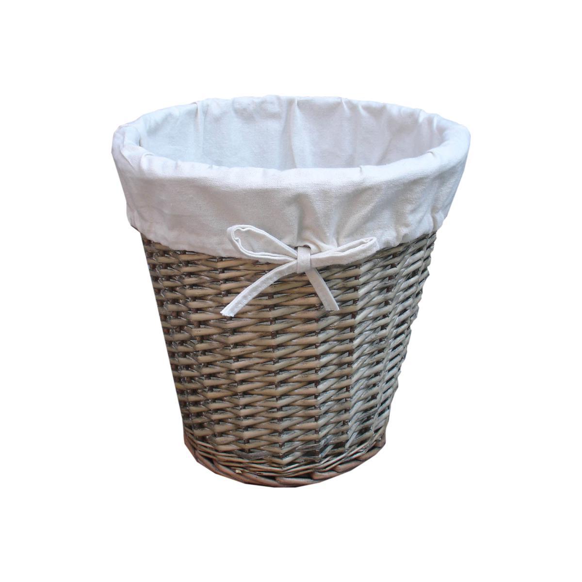 Crafted from hardwearing wicker, this grey bin features a white canvas liner and has a capacity of 15 litres.