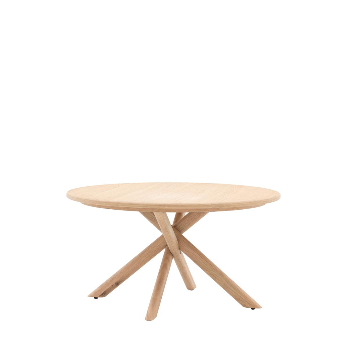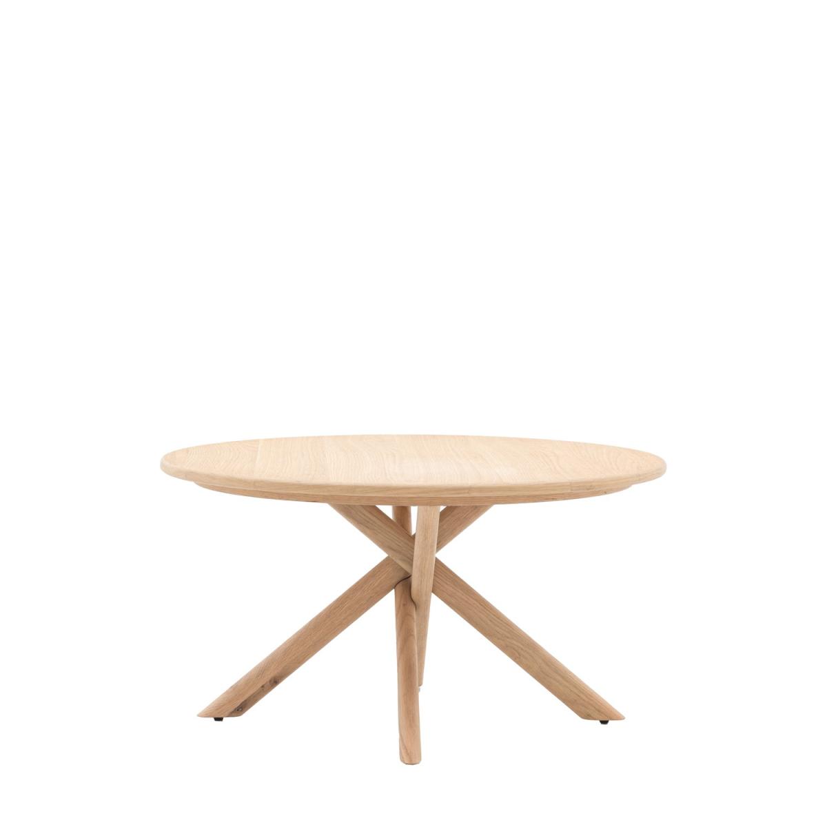 The smooth, circular design creates a stylish focal point in your living space. Featuring a striking interwoven leg structure, this sculptural base adds a bold architectural element while ensuring excellent stability and support. The beautifully finished wood grain brings a natural elegance to your décor. Expertly crafted from high-quality wood, this coffee table is built to withstand daily use, providing exceptional strength and stability for years to come. Whether placed in a minimalist apartment or a cosy traditional living room, this coffee table complements a range of aesthetics. Upgrade your living space with this modern wooden coffee table, featuring a sleek round tabletop and sculptural base for a stylish yet functional touch. The natural wood finish enhances its timeless appeal, making it a versatile centrepiece for any home. Whether you’re entertaining guests or enjoying a quiet evening, this coffee table delivers both elegance and practicality. Dimensions:H41 x W77 x D77 cm Package dimensions: H11 x W83 x D83 cm Product weight:12.5 kg Colour: Brown Material: MDF, Oak, Oak Veneer, Rubberwood Finish: Oak Assembly required: No