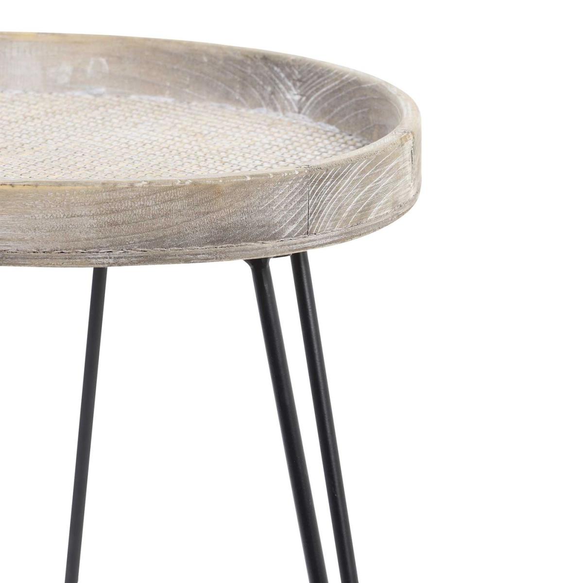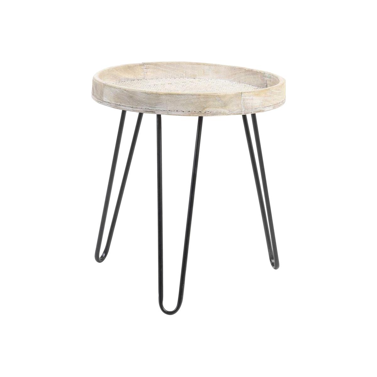 Design. A beautiful contrast of rustic and industrial style. The Natural Wood Side Table comprises black wire tripod style legs and a whitewashed tabletop, complete with a rim to the perimeter to ensure all items are safely placed atop. Natural grains and knots make this piece feel truly unique, a perfect choice to add character to a modern home.