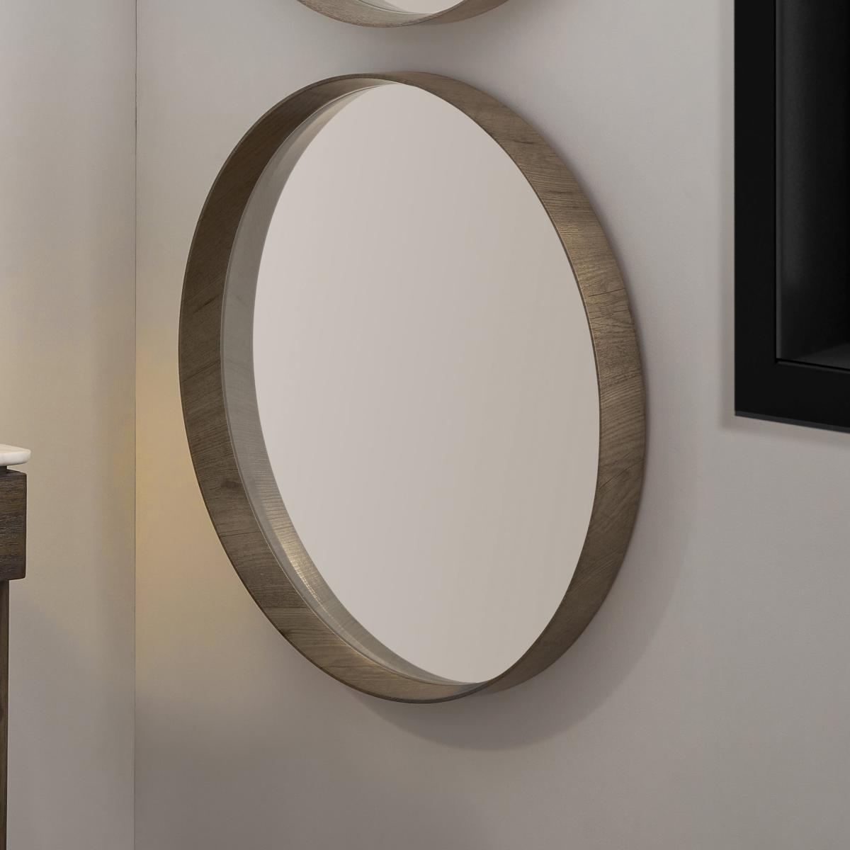 * Handcrafted mirror* Versatile design* Round shape* Wood effect laminate* Easy to hang Simply stylish, this round mirror will enhance your space with a practical and eye-catching design. Featuring a wood effect laminate and standout frame, this mirror will complement any area of your home.