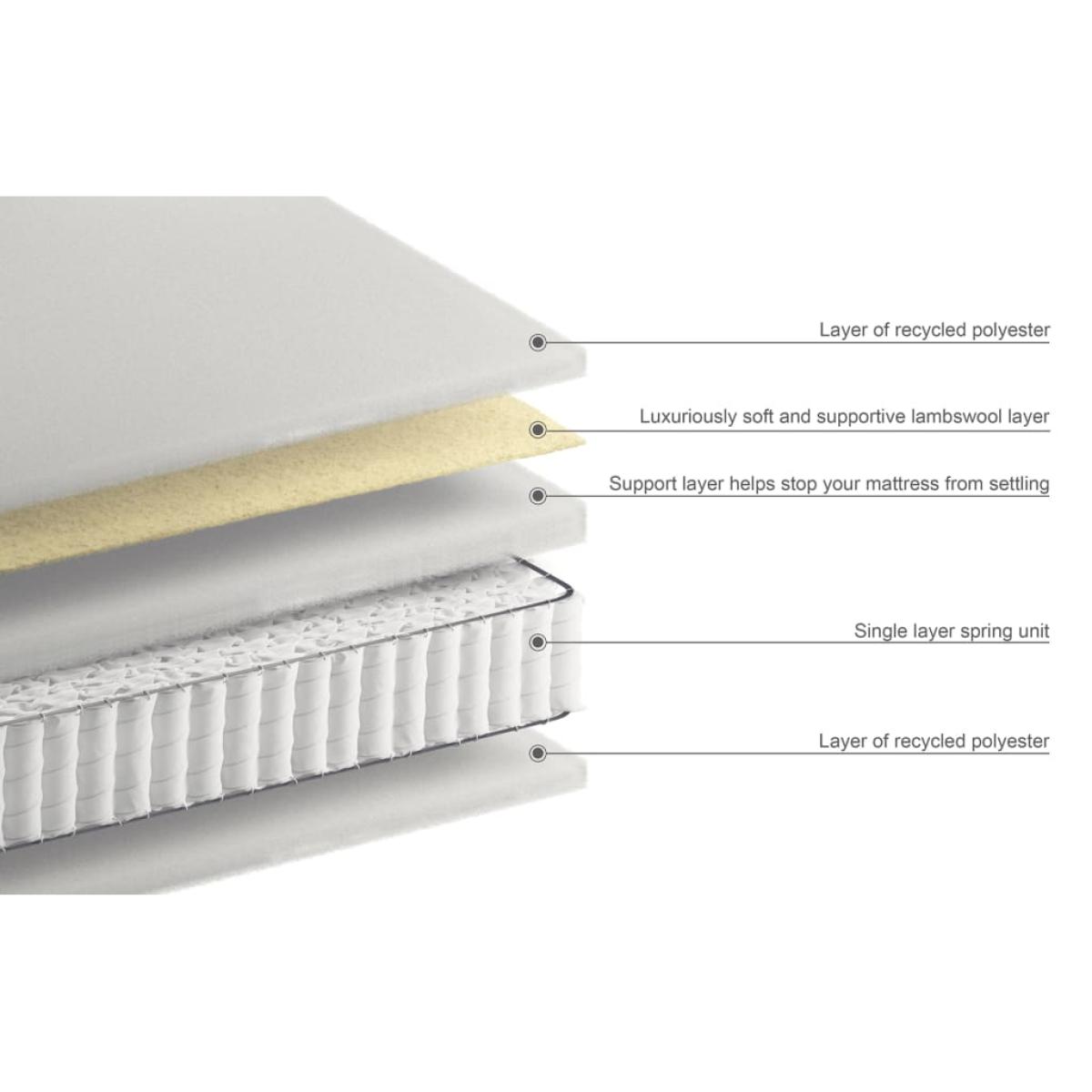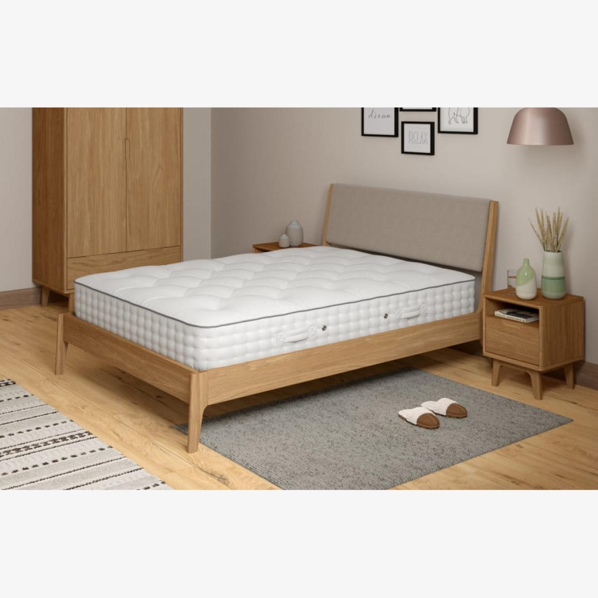 Sink into the glorious comfort of this medium-support, pocket-sprung mattress, and you're all set for a peaceful snooze. Each spring is housed in its own chamber so that it responds individually to your unique contours. This also helps reduce any disturbance caused by your partner's natural movements during the night, making this mattress ideal for couples. It's made with naturally breathable wool and features an antibacterial finish for a fresh feel and four vents that allow cooling air circulation. Acti Pro anti-allergy technology in the cover helps to combat allergens and odours for added hygiene. Your new mattress's no-flip design eliminates the need for regular turning. Instead, ensure even wear by using the four handles to regularly rotate it. Do this once a week for the first three months, and then every three months after that. Three rows of side stitches ensure extra durability. This piece is made in Great Britain and comes with a 10-year guarantee for peace of mind.