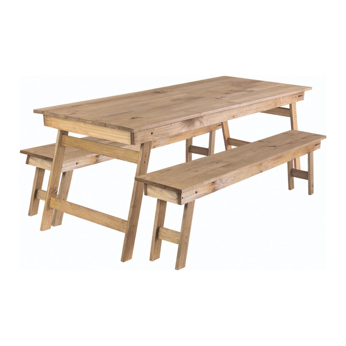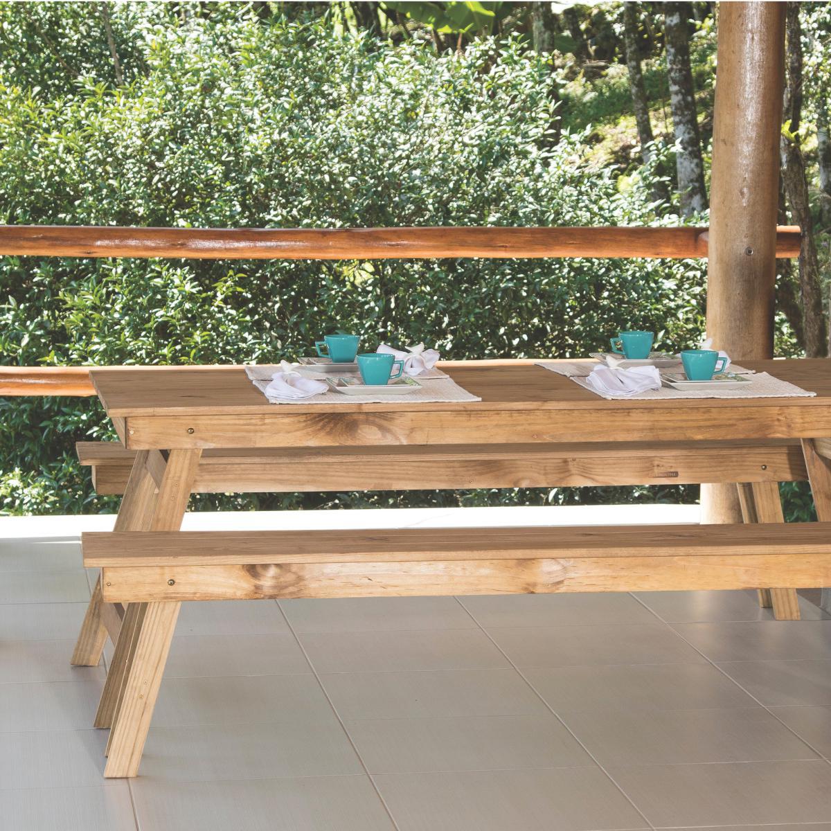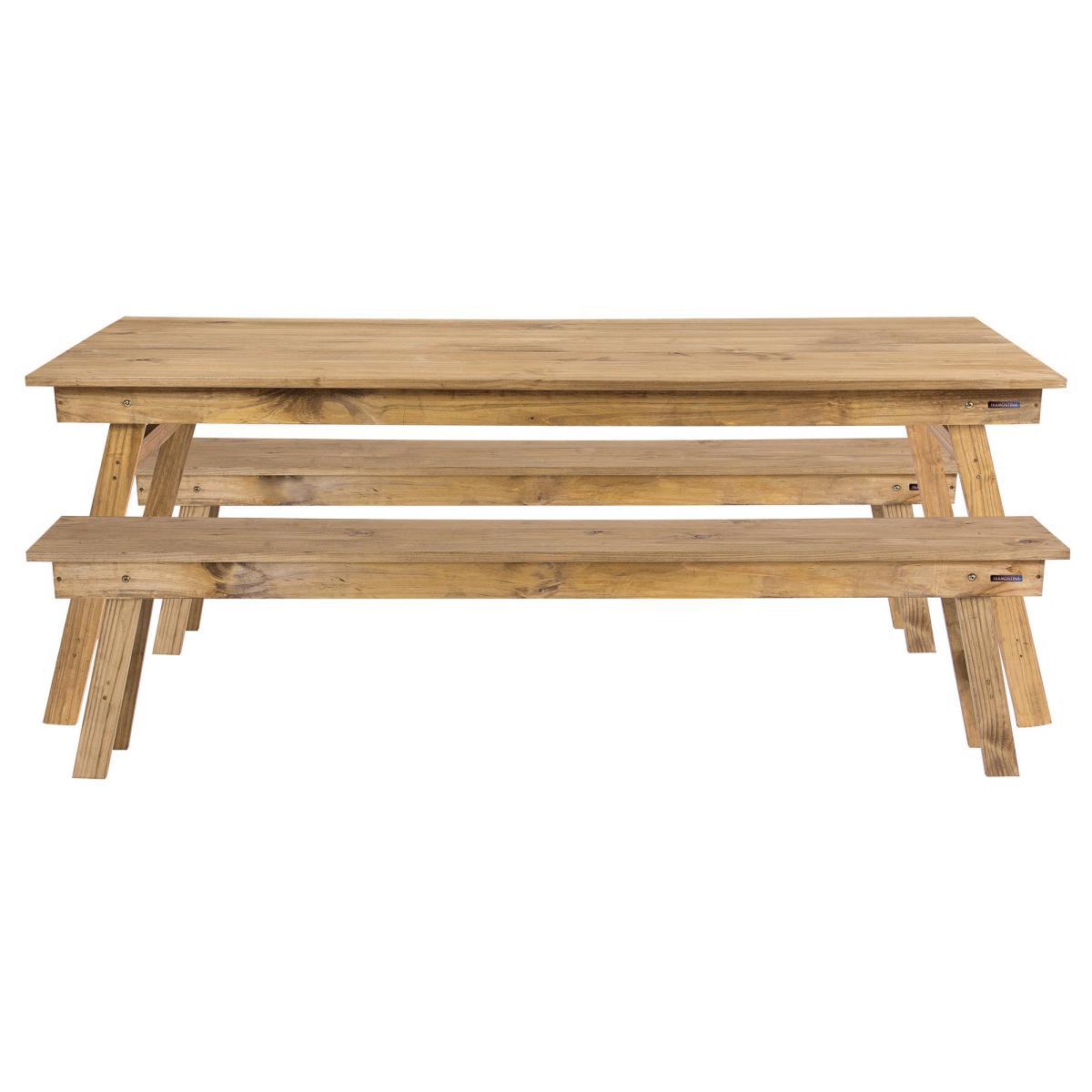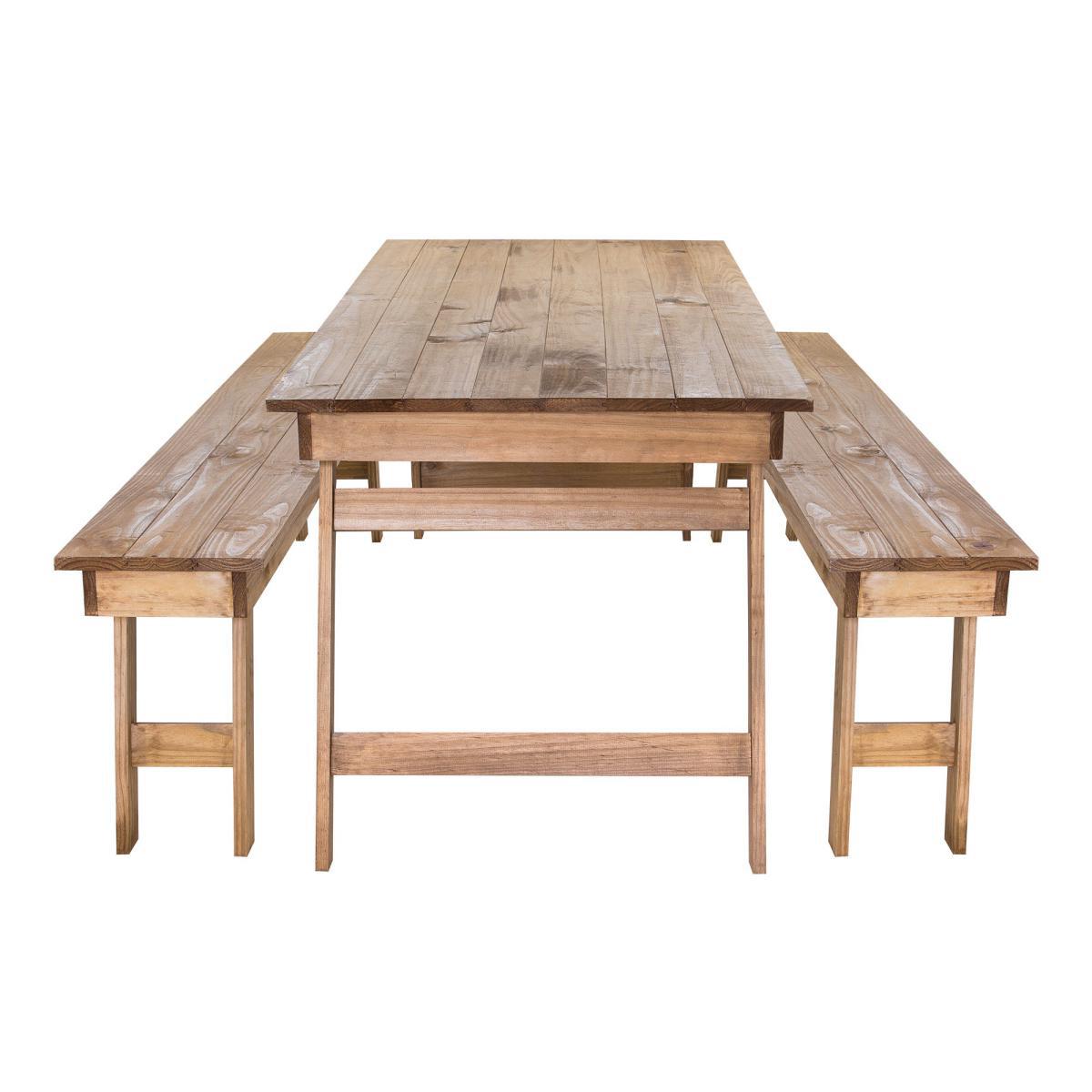 Fashioned with a contemporary rustic style, this folding bench set has been beautifully crafted from certified pine wood. Both the benches and tables have legs that fold up quickly making storage easy. Great for both indoor and outdoor use, if the bench is permanently kept outdoors, it is recommended that the bench is covered.