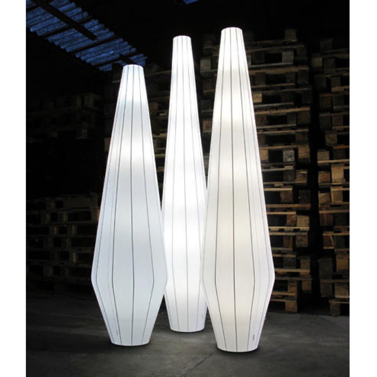 Since 2002, Dix heures Dix has been developing design lighting fixtures like Nature, a floor lamps in white stretch textile on a steel structure. Thanks to their different cultural backgrounds and industrial experiences, Dix heures Dix's designers, Catherine Grandidier and Fabrice Berrux, create original lighting designs with a twofold objective: exceptional aesthetics and efficient lighting effect.