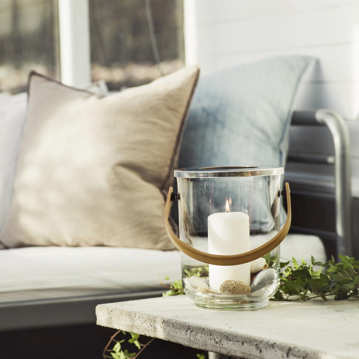 I love this lantern for its minimalist, Scandinavian aesthetic and the way it seamlessly combines function with natural materials. The oak handle adds warmth and texture, making it versatile for both modern and rustic interiors. It works well in a neutral, understated scheme, providing a cosy focal point when lit. For styling tips, try pairing it with other natural elements like stone or woven textiles, and place it on a side table or shelf for an inviting glow. Its compact size also makes it perfect for use on a balcony or within a cosy nook, adding simplicity and elegance to any space.