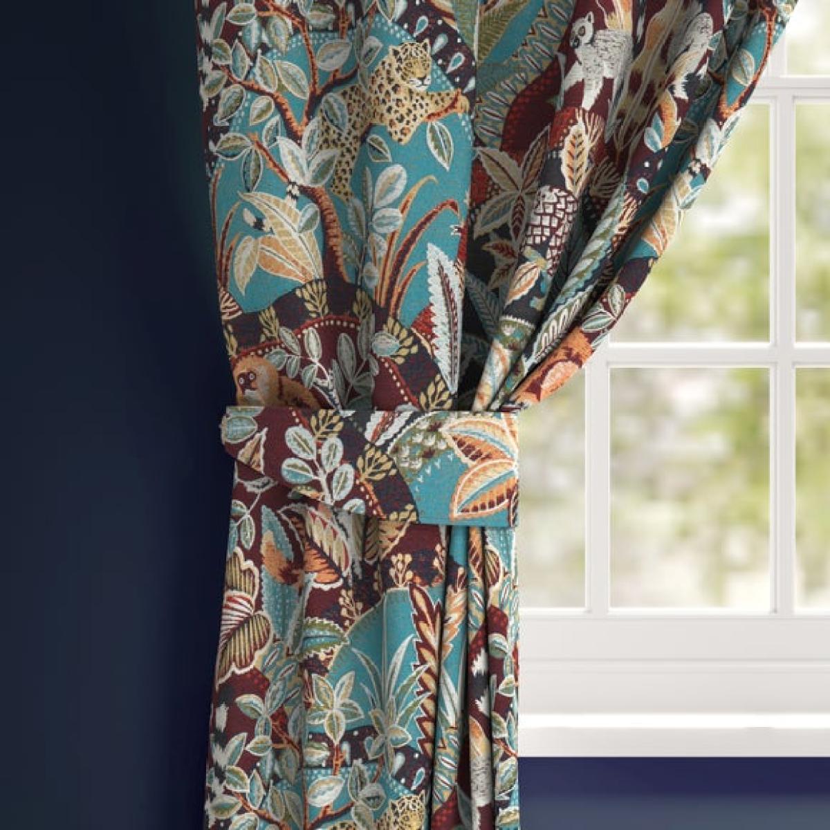 **In collaboration with the Natural History Museum**Bold, colourful & floral pattern. Made in UK100% recycled polyester composition Choose piped or non-piped edge. Coordinating Made to Measure items available to purchase separately. Add the perfect complement to the Natural History Museum's Nature's Exhibitionists range with the matching tieback. Featuring a bold, colourful, and eye-catching floral pattern on rich, deep colour tones, this tieback adds a luxurious, neat and stylish look to your window dressing. Allow more light into your space and create a beautiful, draped effect to showcase the botanical patterns and animals in this stunning fabric. Ideal for boho, maximalist, and contemporary interior styles. Crafted from 100% recycled polyester, this fabric offers long-lasting quality. Choose a piped or non-piped edge to suit your taste. Transform your space and pair with coordinating Made to Measure curtains, cushions, or roman blind exclusive to this collection.**Natural History Museum x Dunelm**From spots and stripes to speckled patterns and maze-like designs, extraordinary markings can be found in abundance throughout the natural world. Animals adorn themselves with unique patterning for a variety of reasons – to blend into their environment to avoid predation, to send a warning signal, to attract mates and even to regulate their temperature. This collection celebrates just a select few of the many beautiful patterns that can be found in nature from the striking markings of the jaguar to the brilliantly vivid colours of a poison dart frog. With many of the species featured within this collection at risk or endangered, we want to shine a light on these incredible animals and raise awareness of threats to the security of their future. © The Trustees of the Natural History Museum, London 2025. All Rights Reserved.