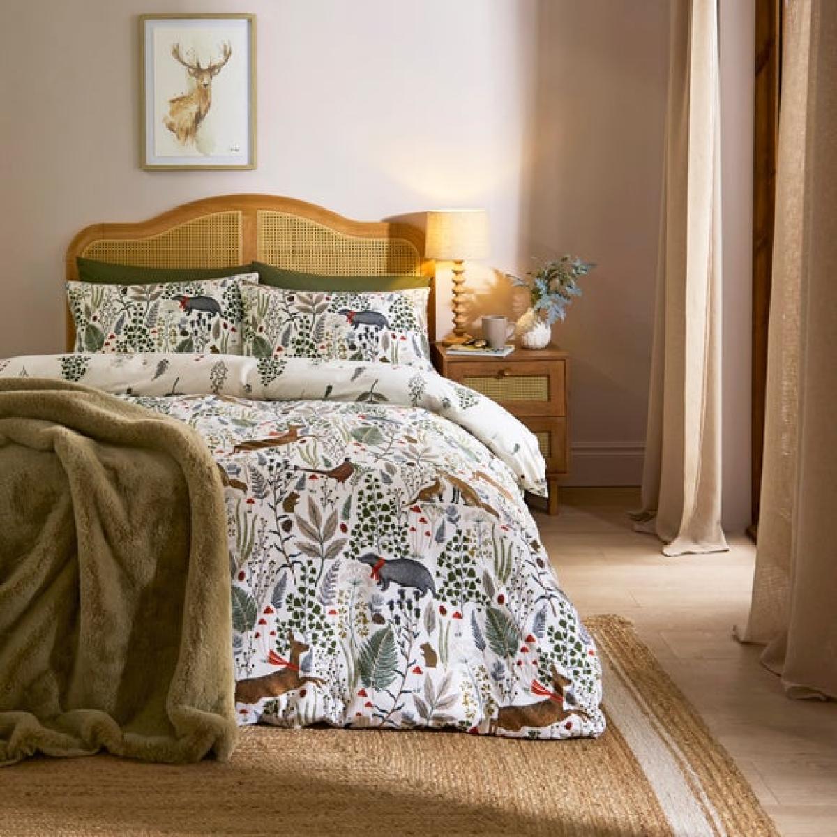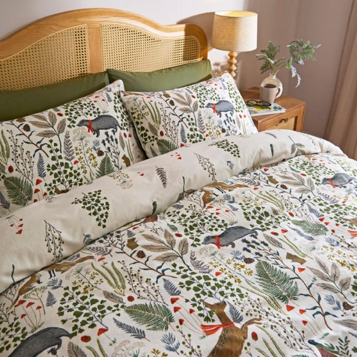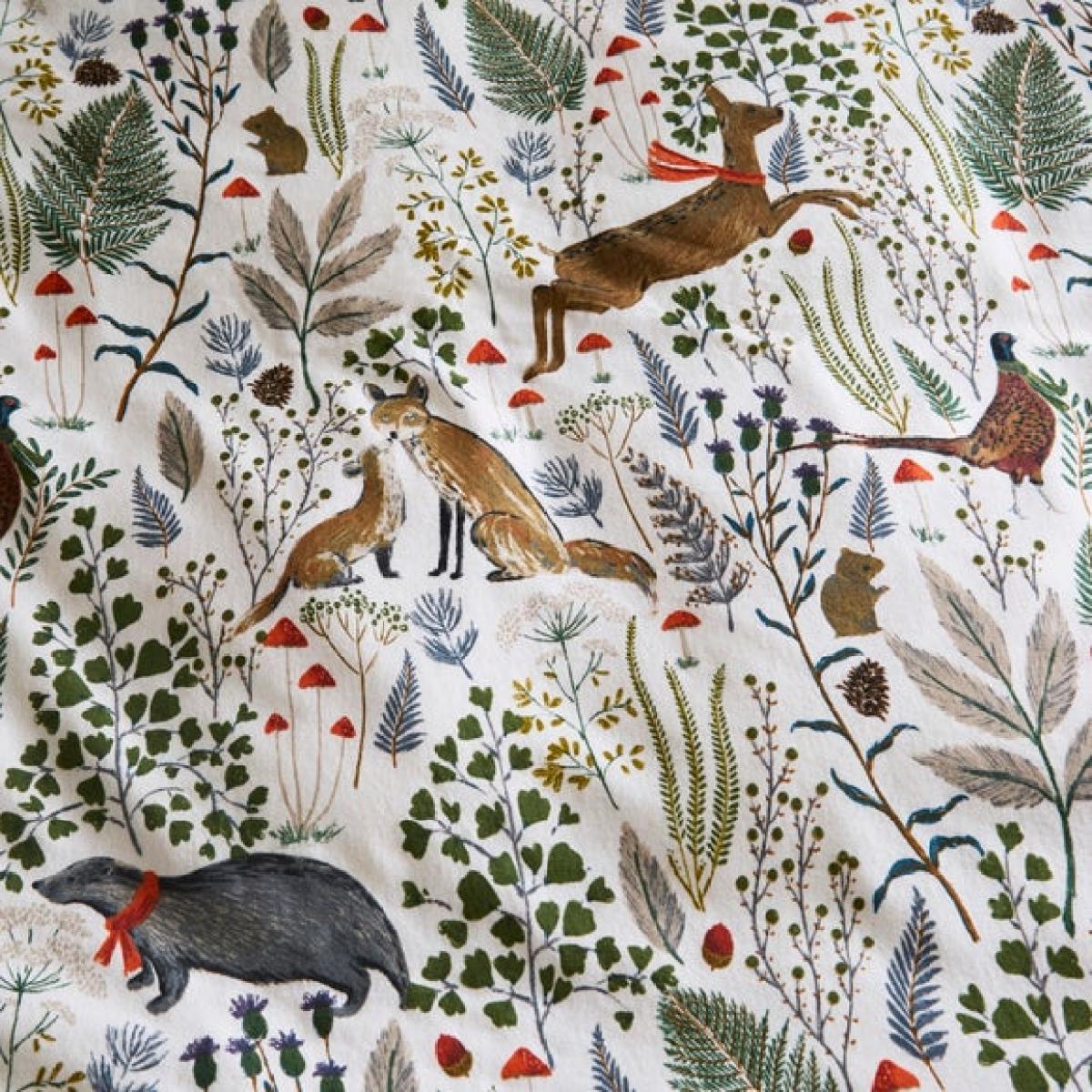 * Extra cosy, brushed cotton composition * Whimsical, animal design * Button closure * Corresponding items available * Machine Washable Create a cosy, storybook-inspired space with the Nature’s Friends Brushed Cotton Duvet Cover & Pillowcase Set. This adorable bedding set features a whimsical woodland animal print that brings gentle charm and personality to any room. Made from 100% brushed cotton, it’s soft to the touch and extra warm - perfect for snuggling up when the temperatures dip. With a natural colour palette and a playful design, it’s great for children’s rooms, guest spaces, or anyone who loves a little touch of the outdoors inside. A button closure ensures everything stays secure, and coordinating items are available to complete the set. It’s machine washable too, so bedtime stays stress-free and wonderfully comfy. This collection is verified by OEKO-TEX® and independently tested for harmful substances as well as manufactured using sustainable processes under socially responsible working conditions. MADE IN GREEN by OEKO-TEX® is a unique product label to trace the countries and production facilities - search the product label for more information.