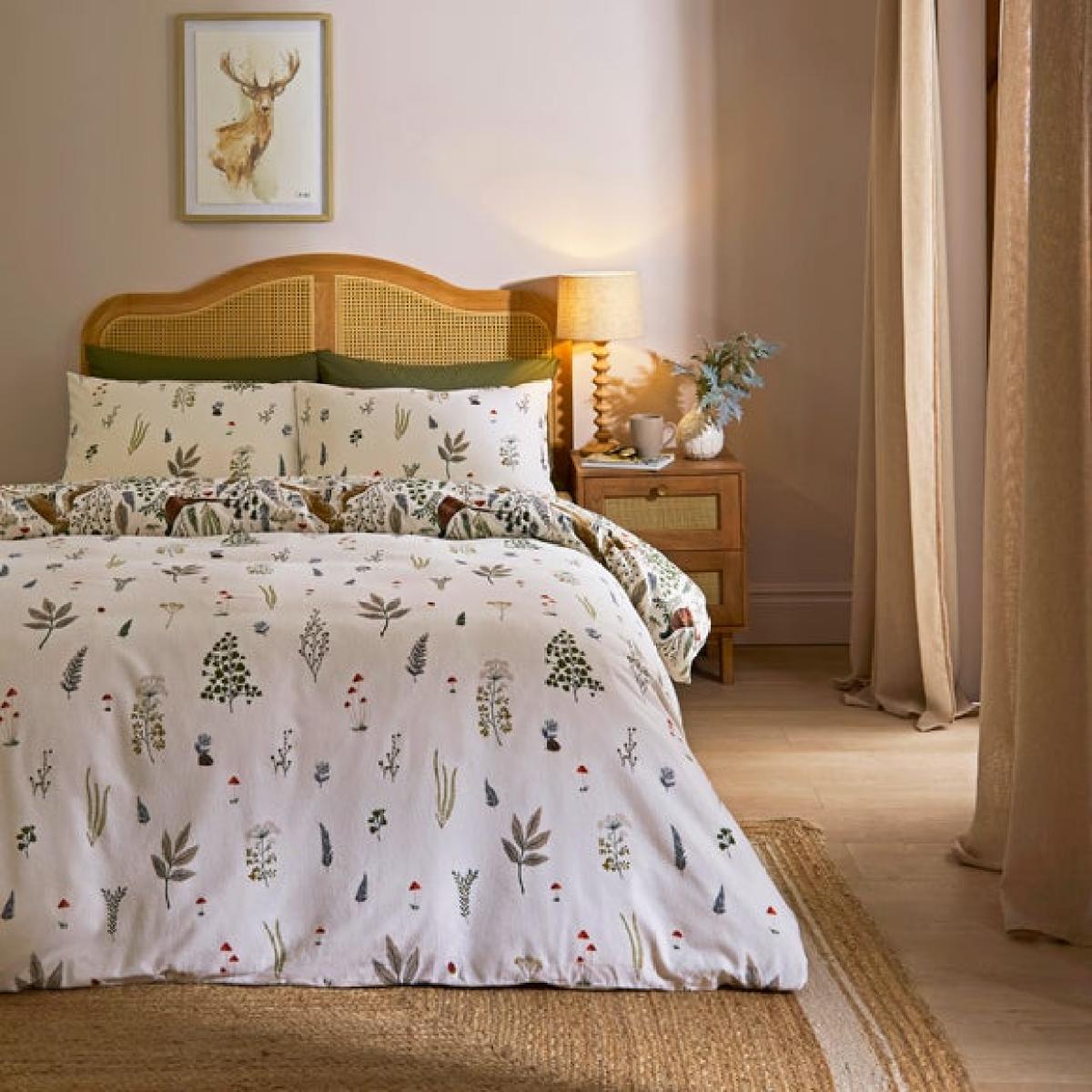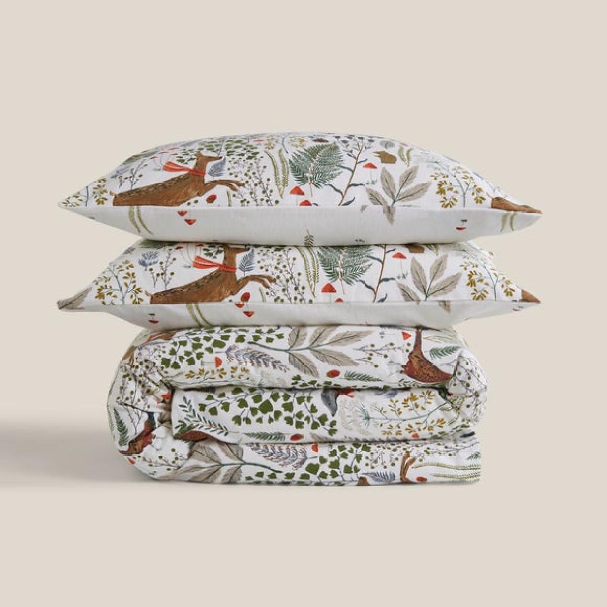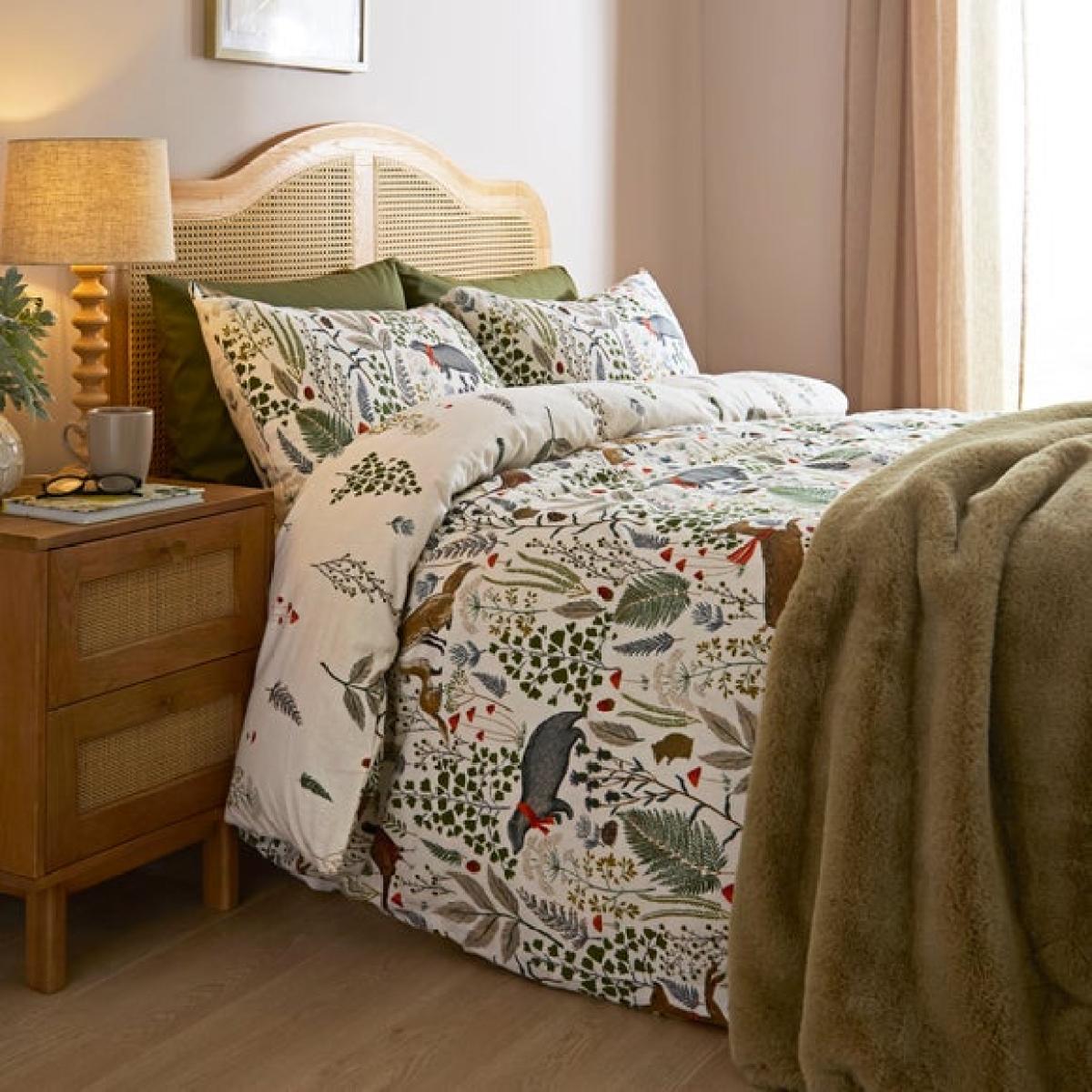 * Extra cosy, brushed cotton composition * Whimsical, animal design * Button closure * Corresponding items available * Machine Washable Create a cosy, storybook-inspired space with the Nature’s Friends Brushed Cotton Duvet Cover & Pillowcase Set. This adorable bedding set features a whimsical woodland animal print that brings gentle charm and personality to any room. Made from 100% brushed cotton, it’s soft to the touch and extra warm - perfect for snuggling up when the temperatures dip. With a natural colour palette and a playful design, it’s great for children’s rooms, guest spaces, or anyone who loves a little touch of the outdoors inside. A button closure ensures everything stays secure, and coordinating items are available to complete the set. It’s machine washable too, so bedtime stays stress-free and wonderfully comfy. This collection is verified by OEKO-TEX® and independently tested for harmful substances as well as manufactured using sustainable processes under socially responsible working conditions. MADE IN GREEN by OEKO-TEX® is a unique product label to trace the countries and production facilities - search the product label for more information.